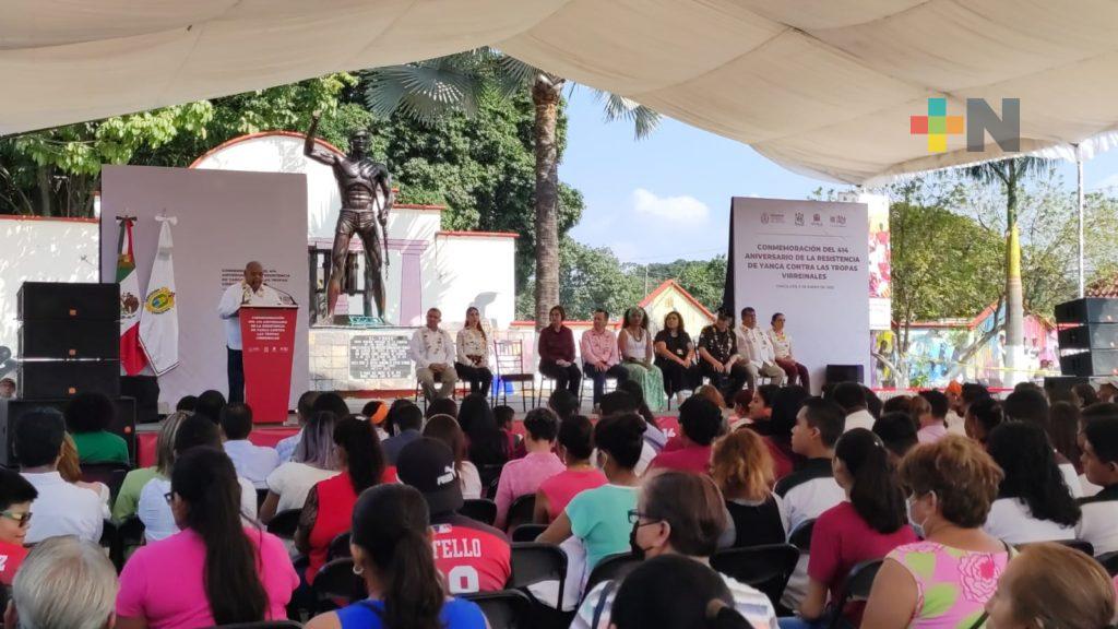 Yanga, Ver.- En el marco del 414 aniversario de la resistencia de Yanga contra las tropas virreinales, el gobierno del estado resalta que se continúa con la lucha de libertad para el pueblo veracruzano, ahora de quienes quieren sembrar miedo.