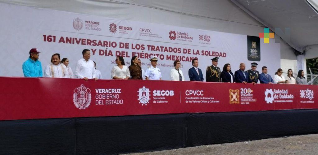 Desde la Plazuela de los Tratados de la Soledad, en la celebración de estas dos citas históricas y en presencia de mandos navales, militares y autoridades de los poderes Legislativo y Judicial; el pueblo y gobierno de veracruz reconocieron este día la lealtad, patriotismo y entrega de quienes contribuyeron a la soberanía de la nación.