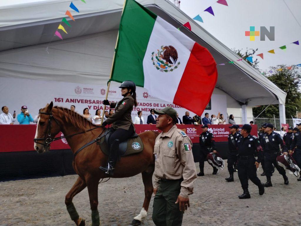 Al término del acto solemne conmemorativo, las autoridades veracruzanas presenciaron el desfile cultural, cívico y militar por el 161 aniversario de los Tratados de la Soledad.