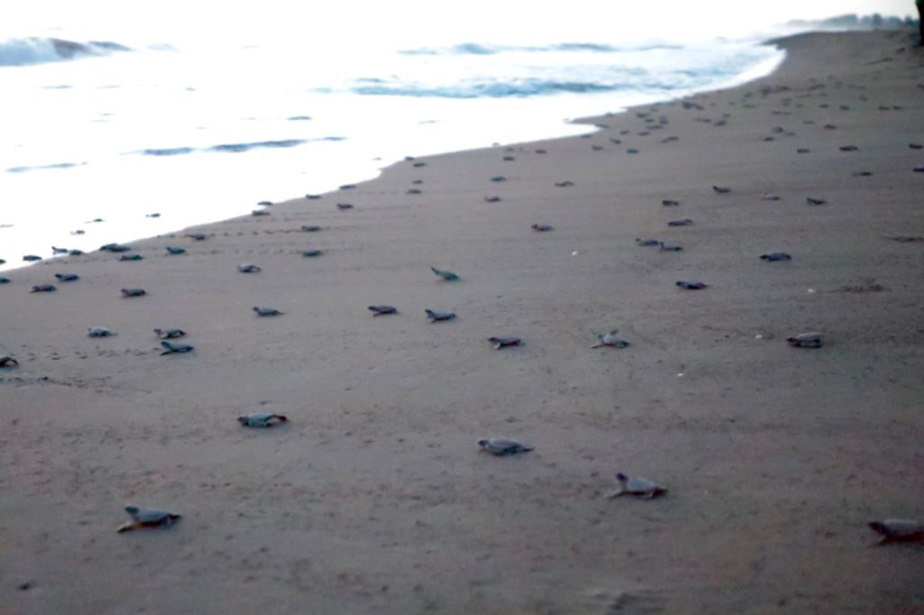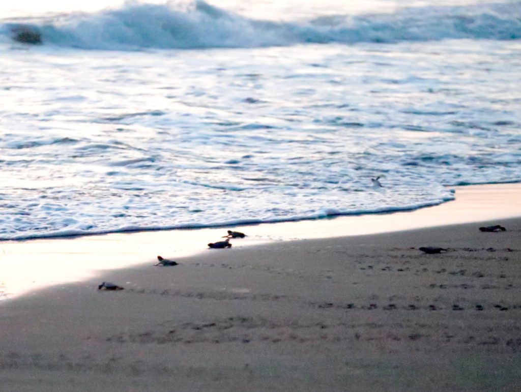 La actividad incluyó la colocación de 487 huevos en cinco nidos del campamento; anualmente, suman alrededor de 150 mil en resguardo temporal y se da seguimiento a medio millón de crías a lo largo de la costa.