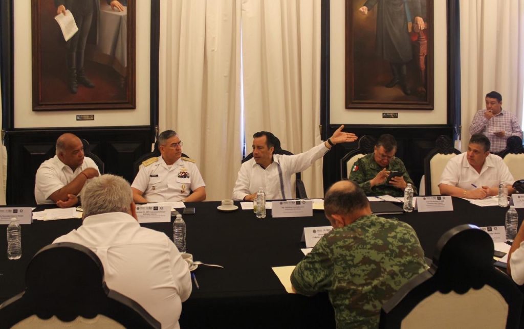 Veracruz, Ver.- El gobernador Cuitláhuac García Jiménez y la secretaria de Gobernación, Olga Sánchez Cordero, encabezaron la Mesa de Coordinación para la Construcción de la Paz, que se celebró en esta ciudad.