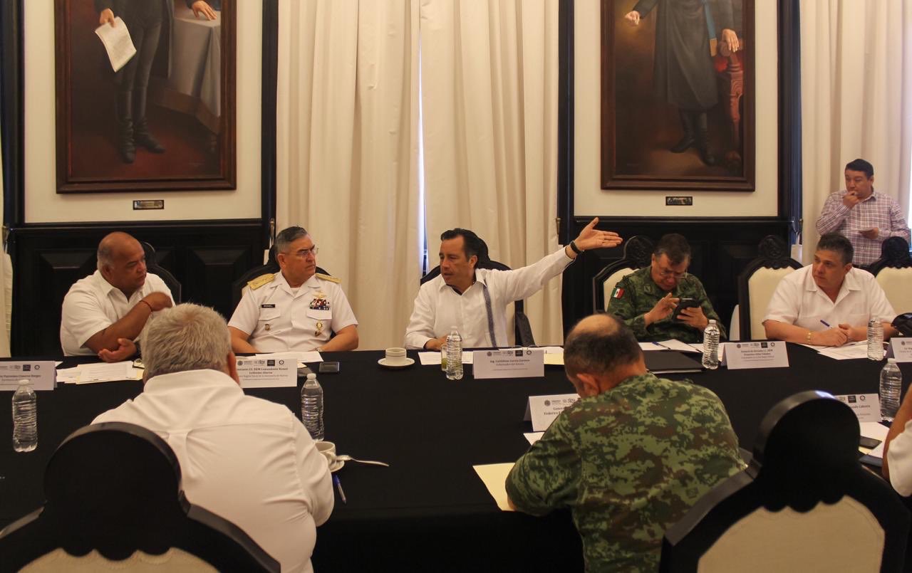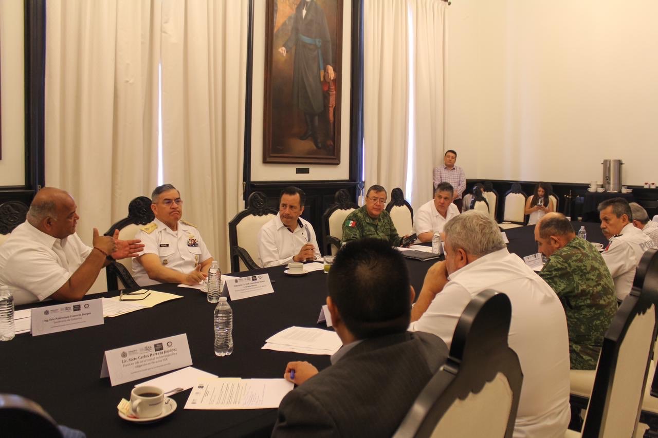 En la reunión estuvo presente el secretario de Gobierno, Eric Cisneros Burgos, así como representantes de la Secretaría de la Defensa Nacional, Secretaría de Marina, Policía Federal, Fiscalía General de la República, Fuerza Civil y Secretaría de Seguridad Pública estatal.