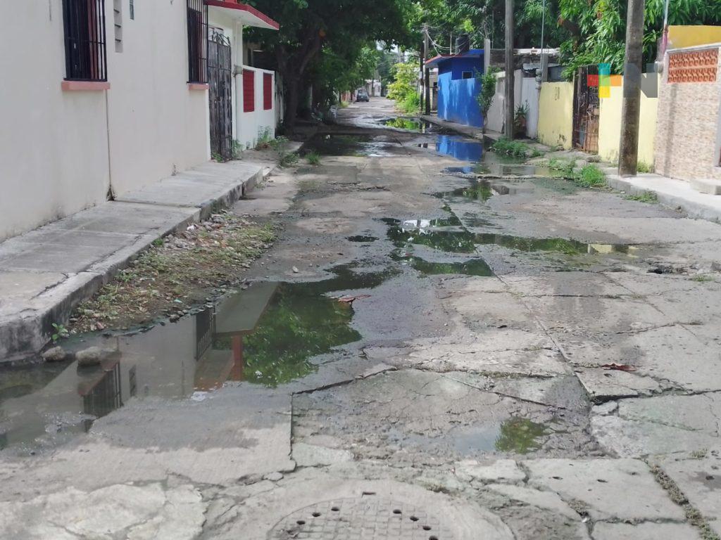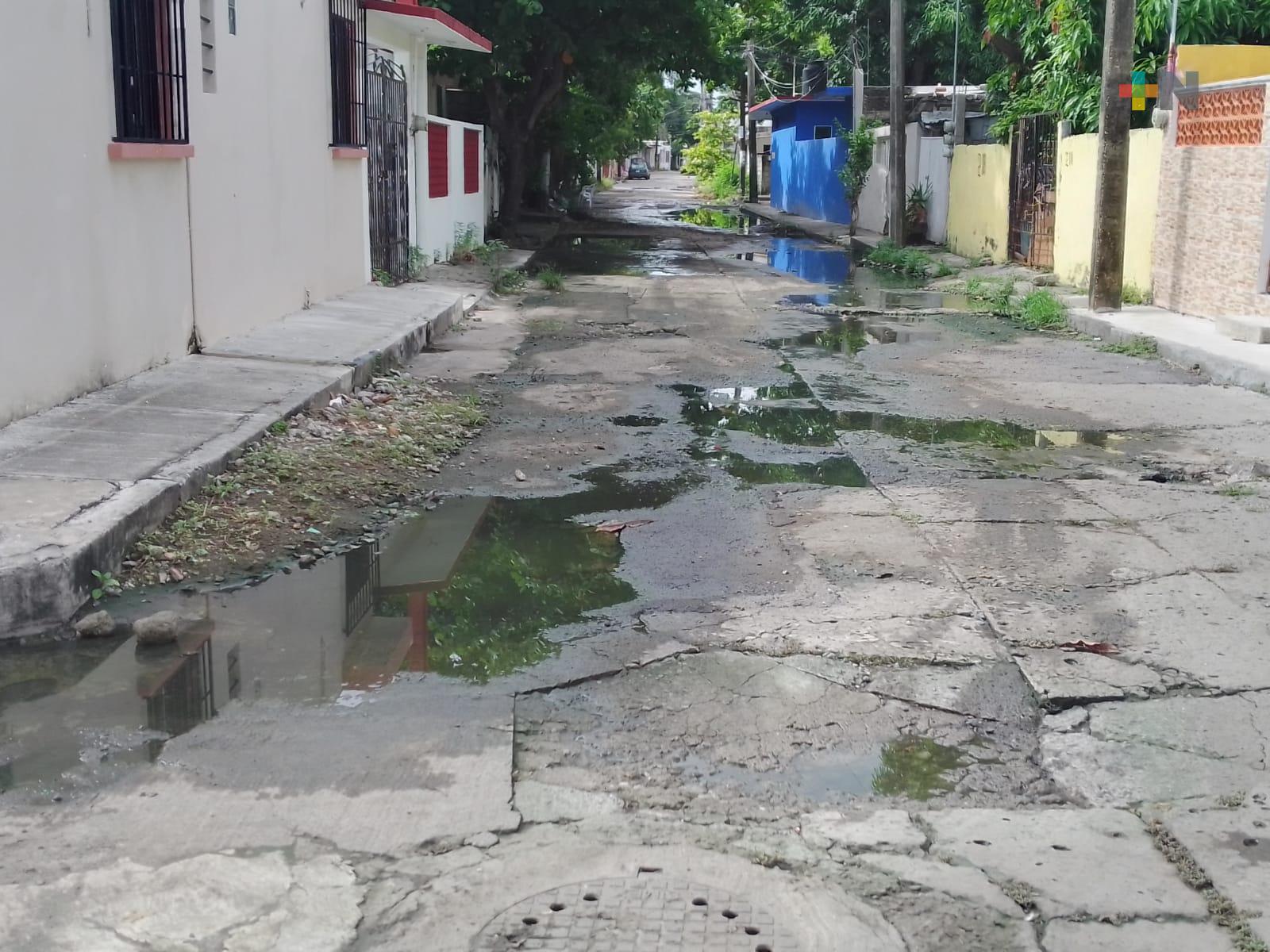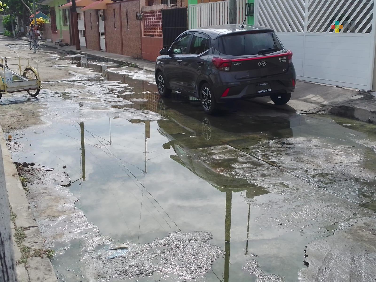 Sufren encharcamientos que dañan la vialidad, mal olor durante casi todo el día, y una imposibilidad para pasar caminando a fin de esquivar el agua insalubre.