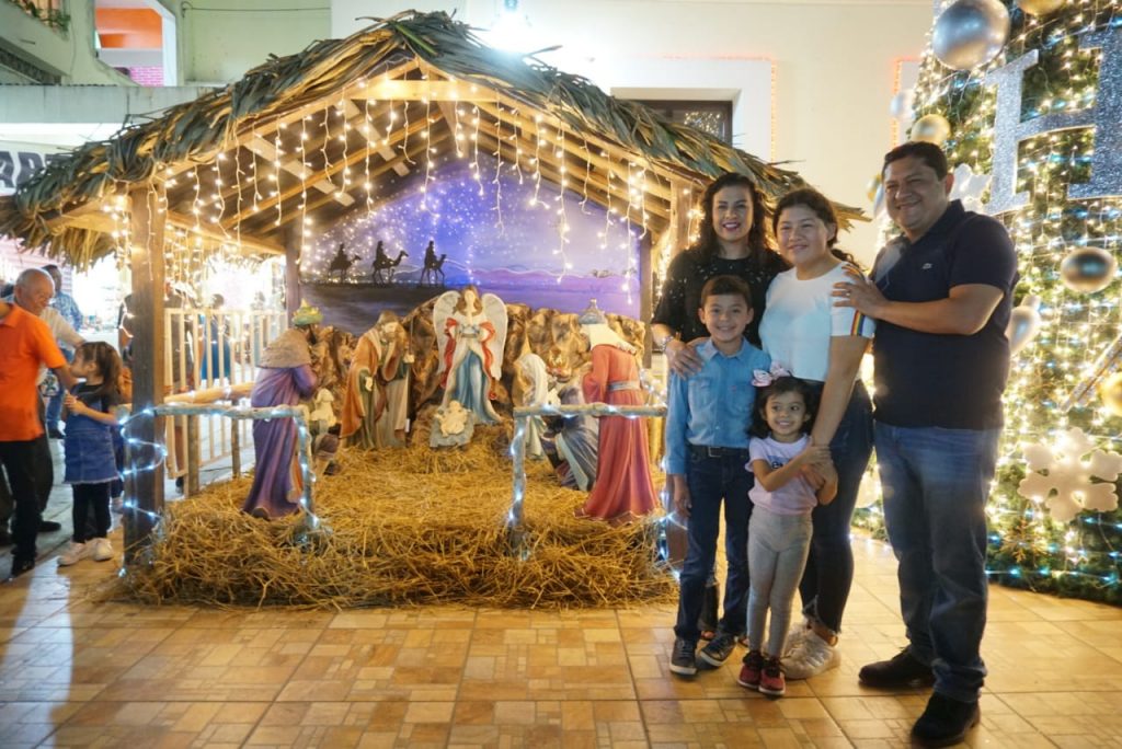 En Papantla, el alcalde Mariano Romero González y su familia participaron en el encendido del árbol navideño.