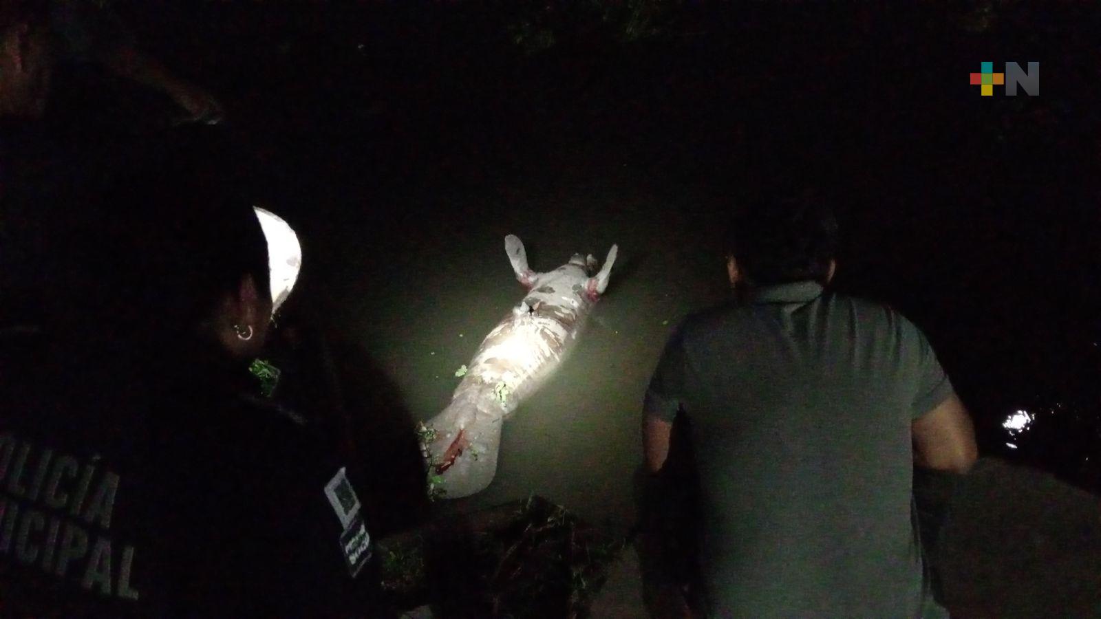 Coatzacoalcos, Ver.- Un manatí sin vida de aproximadamente tres metros de longitud fue localizado flotando sin vida en el río Coatzacoalcos.