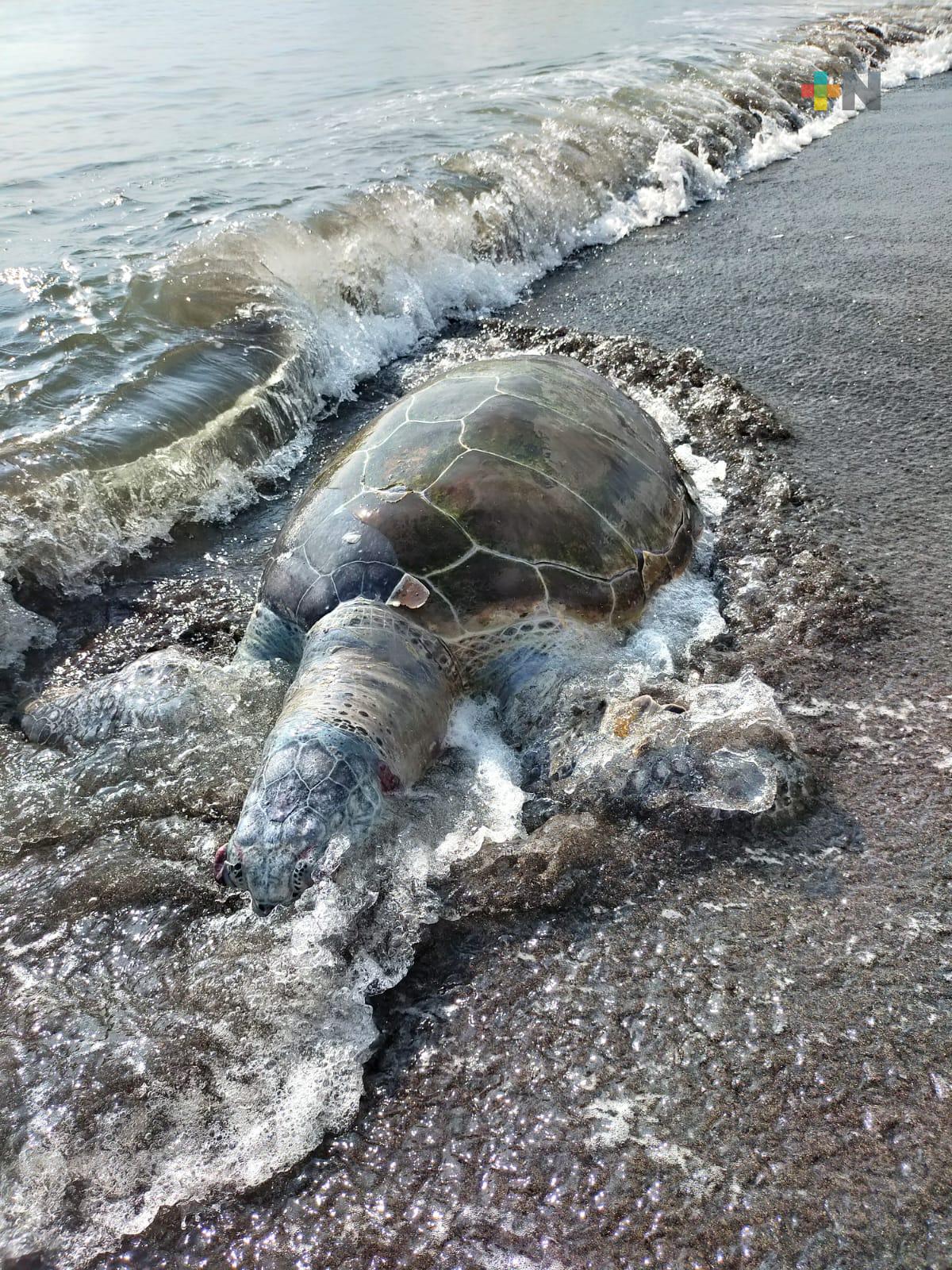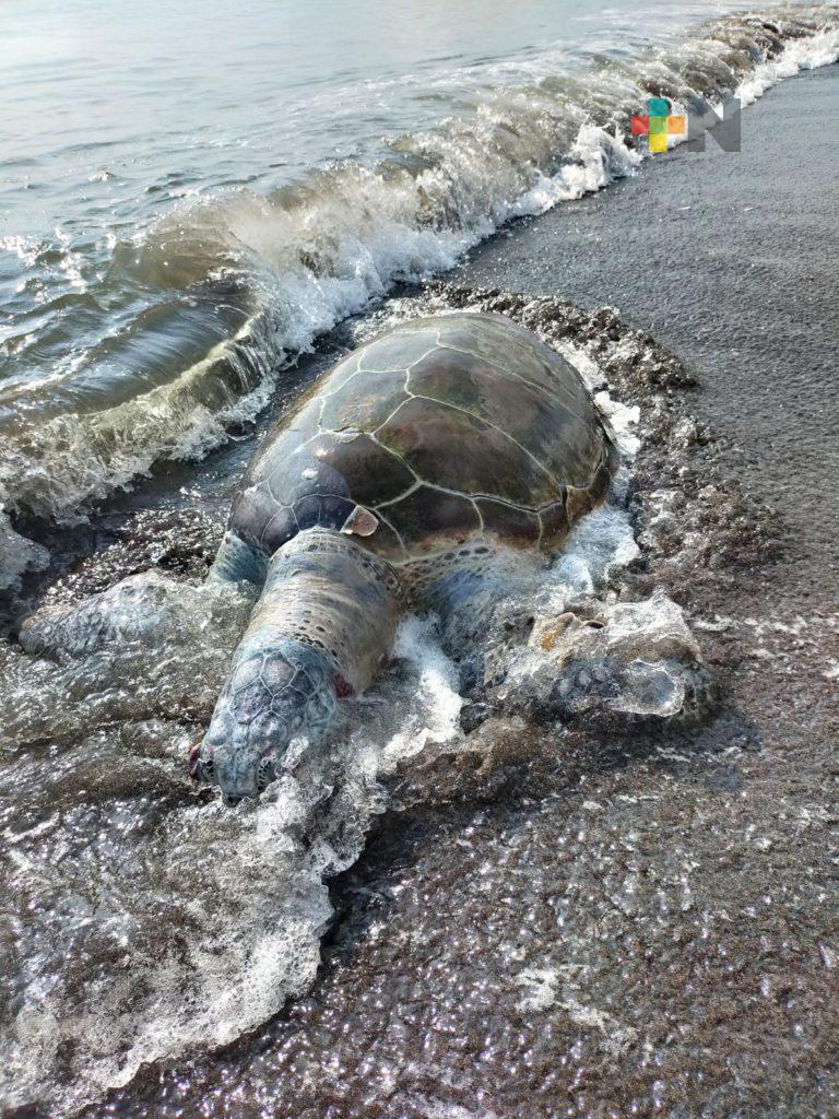 Alvarado, Ver.- La mañana de este martes fue hallada muerta una tortuga de la especie verde en la orilla de la playa de la zona conocida como la Isla del Amor en el municipio de Alvarado.