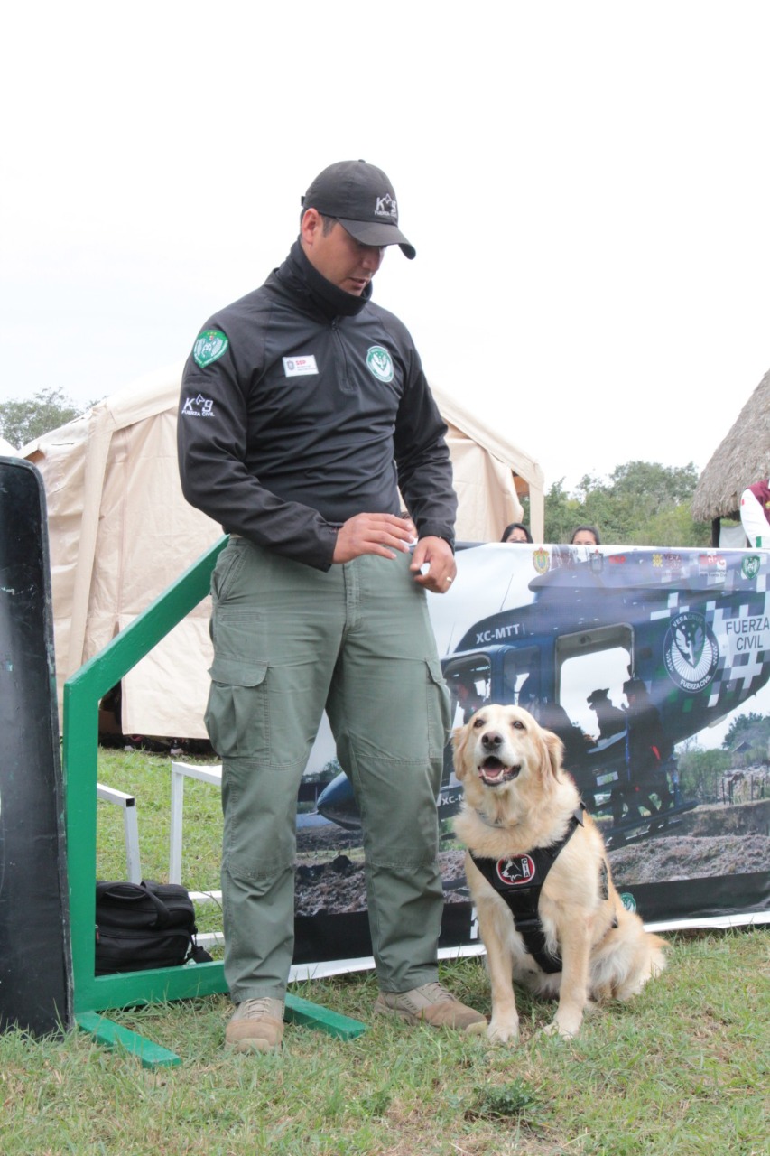 De las 11:00 a las 16:00 horas, los visitantes pueden apreciar la exhibición de la Compañía K9 de Fuerza Civil integrada por más de 30 agentes caninos de élite que combaten ilícitos, detectan narcóticos y explosivos; también colaboran en búsqueda de personas, guarda e intervención táctica. Aquí es mostrado parte de su entrenamiento en obediencia básica y acondicionamiento físico.