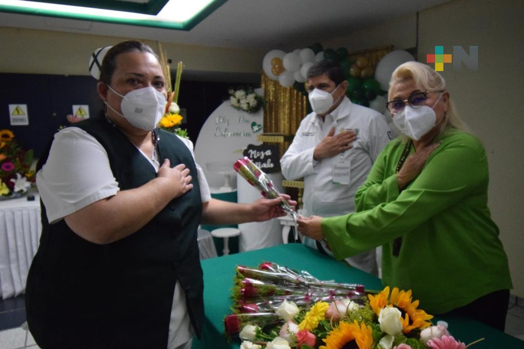 «Nuestro personal ha estado en la primera línea, como estos pacientes, atendiendo hombro a hombro con el demás equipo de salud. Es quien le brinda los cuidados y genera ese vínculo aparte con el paciente. Es a través de quien se tiene comunicación, sabe cómo se encuentra su paciente y quien lo alienta y ayuda a alimentario. Quién les da las medidas básicas de alimentación e higiene a ese paciente sin dejar de lado esos cuidados profesionales y especializados», mencionó Margarita Rodríguez Murrieta, coordinadora de Enfermería en Salud Pública del IMSSS Veracruz Norte.