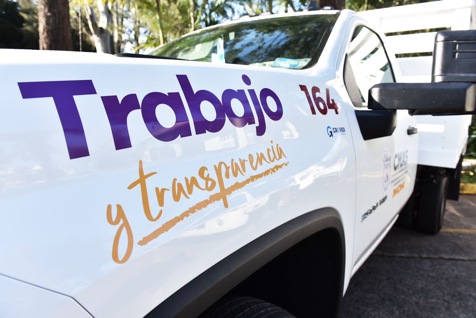 Asimismo, detalló que con el apoyo de los empresarios y los impuestos de la gente, se entregó un camión de volteo, un camión tanque-pipa y una grúa hidráulica para la Dirección de Medio Ambiente; una grúa hidráulica para la Dirección de Alumbrado Público; dos camionetas Ranger para la Dirección de Obras Públicas; un camión de volteo de siete metros cúbicos, un camión tanque-pipa, dos camionetas Ranger y tres camionetas de 3.5 toneladas para la Comisión Municipal de Agua Potable y Saneamiento (CMAS).