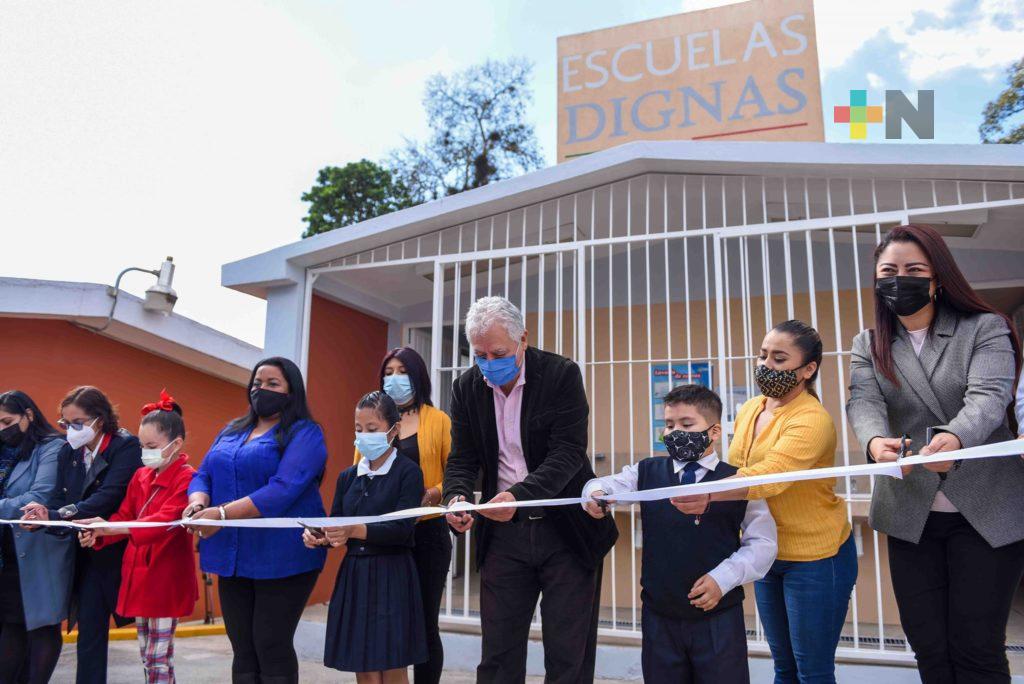 Xalapa, Ver.- La entrega del Centro Comunitario de Atención a la Primera Infancia (CCAPI), la rehabilitación de la primaria “Manlio Fabio Altamirano” y la construcción de un domo en el Centro de Atención Múltiple (CAM) 60, donde se invirtieron 3 millones 504 mil pesos, son ejemplo de la preocupación del Gobierno Municipal por brindar mejor atención en las instituciones donde se forma de manera integral a niñas, niños y adolescentes.