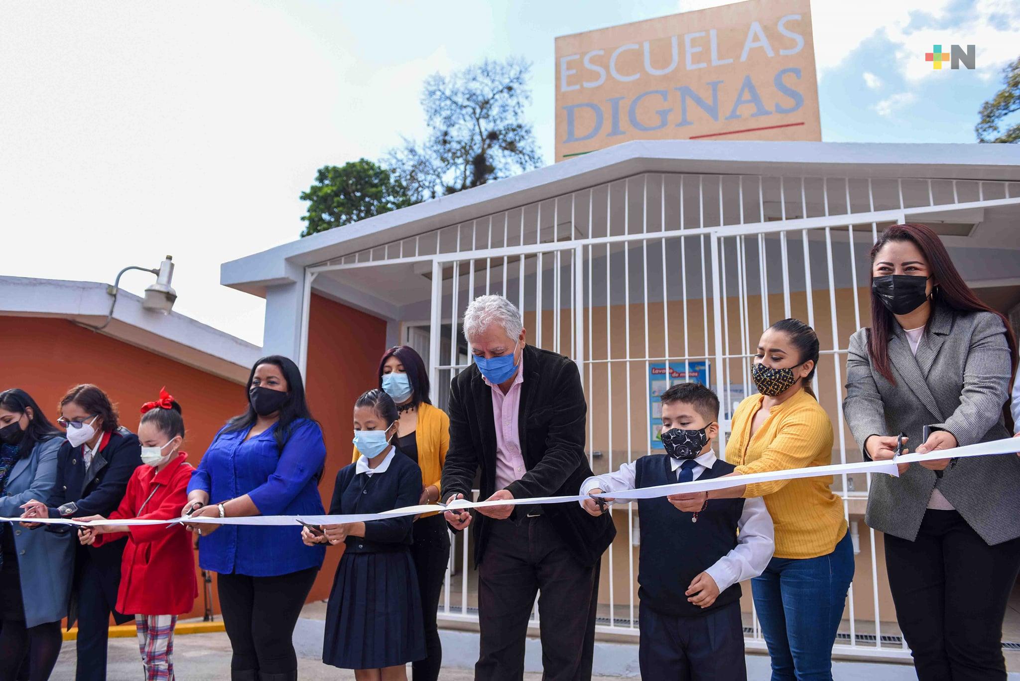 Xalapa, Ver.- La entrega del Centro Comunitario de Atención a la Primera Infancia (CCAPI), la rehabilitación de la primaria “Manlio Fabio Altamirano” y la construcción de un domo en el Centro de Atención Múltiple (CAM) 60, donde se invirtieron 3 millones 504 mil pesos, son ejemplo de la preocupación del Gobierno Municipal por brindar mejor atención en las instituciones donde se forma de manera integral a niñas, niños y adolescentes.