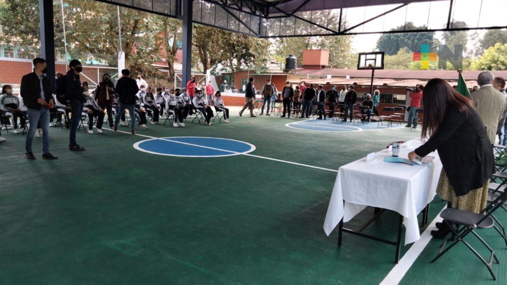 En este plantel se realizaron los trabajos de techado de estructura rígida que ofrecerá protección y resguardo para actividades escolares y para escolares, comentó el alcalde de Xalapa, Hipólito Rodríguez.