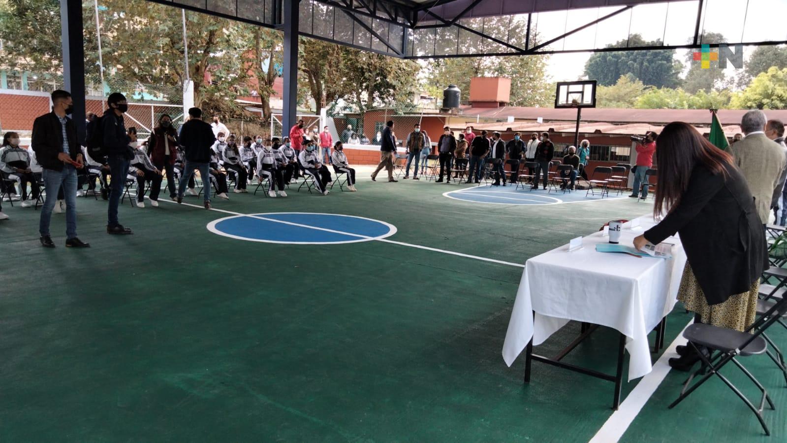 En este plantel se realizaron los trabajos de techado de estructura rígida que ofrecerá protección y resguardo para actividades escolares y para escolares, comentó el alcalde de Xalapa, Hipólito Rodríguez.