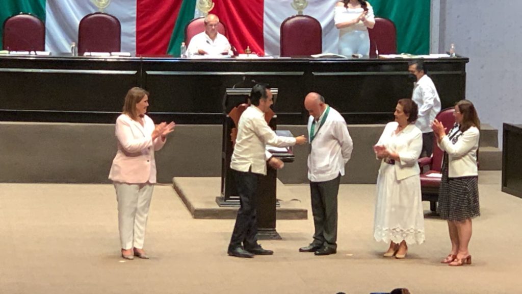 “Las y los diputados y diputade queremos agradecer su invaluable contribución en la formación de jóvenes investigadores, promotores ambientales a favor de proyectos en favor del medio ambiente que han sido embajadores de Veracruz y de México y quienes han obtenido 10 primeros lugares y 6 medallas internacionales, Doctor en usted vemos entrega, pasión y un claro ejemplo del papel de un docente comprometido con el desarrollo sustentable de Veracruz, tenemos un gobierno que trabaja de manera itinerante en favor de las acciones que salvaguardan al medio ambiente”