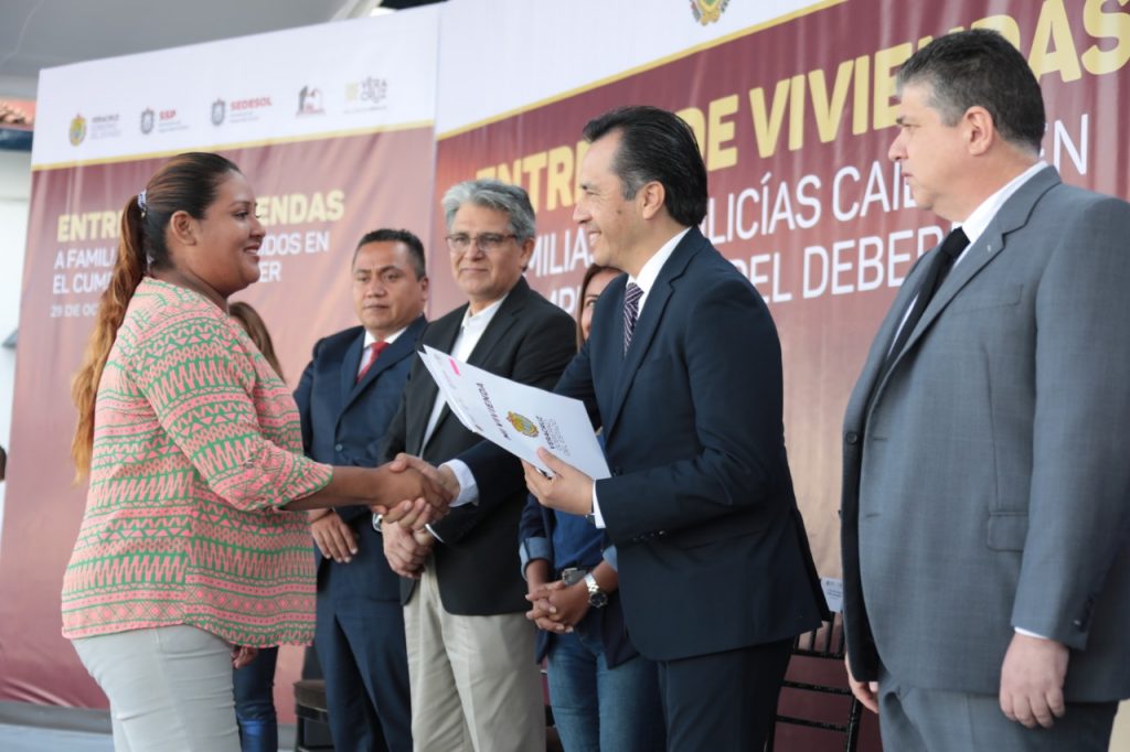 Entrega Gobernador Cuitláhuac García casas a familiares de policías caídos en cumplimiento de su deber