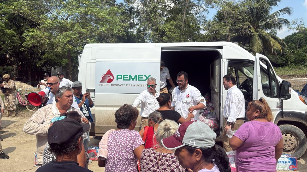 Petróleos Mexicanos (Pemex) entregó hoy 30 toneladas de ayuda humanitaria a familias afectadas en la comunidad de Álamo Temapache, consistentes en agua embotellada, víveres, artículos de limpieza y productos de higiene personal.