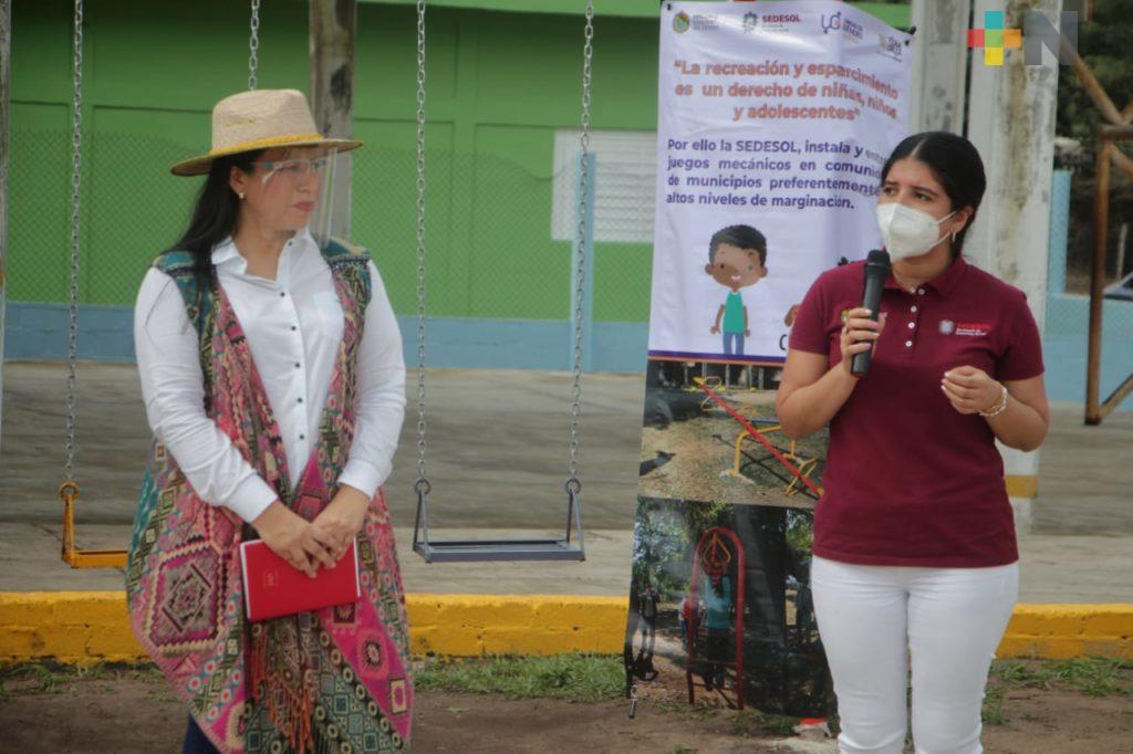 Entrega SEDESOL juegos infantiles en Chacaltianguis