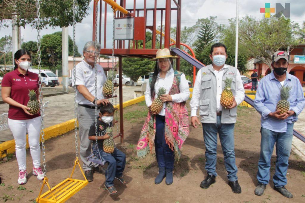 Chacaltianguis, Ver.- Por gestión de la alcaldesa de Chacaltianguis, Mayra Janeth Torres Domínguez ante la Secretaría de Desarrollo Estatal (SEDESOL) del Gobierno del Estado se entregaron juegos infantiles para las zonas rurales y marginadas de esta demarcación, entre ellas la comunidad de Las Sabanetas.
