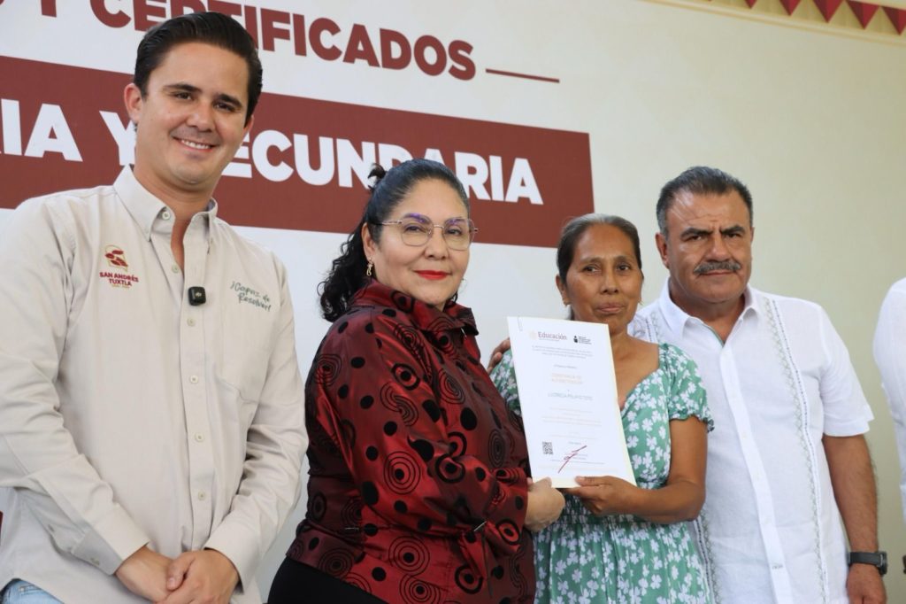 San Andrés Tuxtla,Ver.- Como parte de las acciones para reducir el rezago educativo, la Secretaría de Educación de Veracruz (SEV) entregó 414 constancias de alfabetización, así como 10 certificados de primaria y 10 de secundaria a personas mayores de 15 años que concluyeron su educación básica.