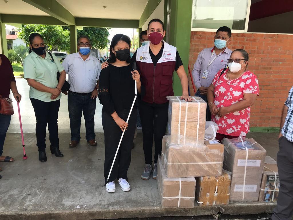- La delegada regional Diana Santiago hizo entrega de material braille y bastón especial para invidentes