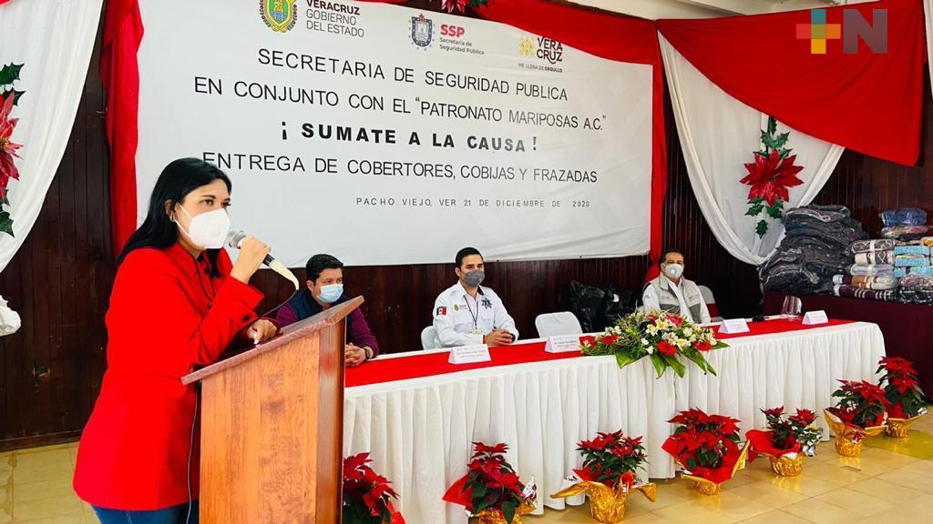 Pacho Viejo, Coatepec.- La Secretaría de Seguridad Pública (SSP), en colaboración con el Patronato Mariposa A.C., entregaron más de mil cobijas a la Dirección General de Reinserción Social (DGPRS), para que estas sean repartidas entre las personas privadas de la libertad –PPL- dentro de los 17 Centros de Reinserción Social Estatales.