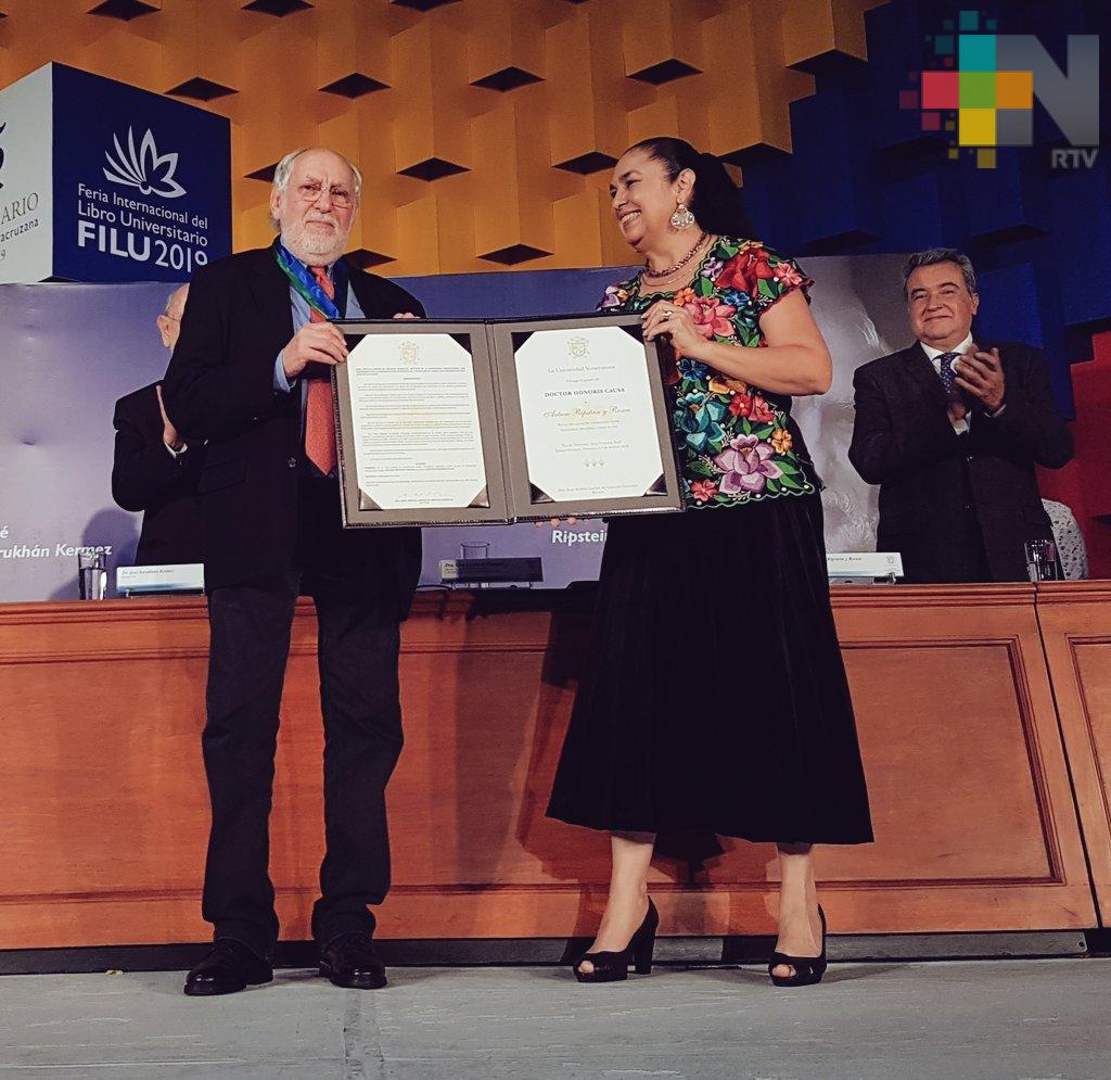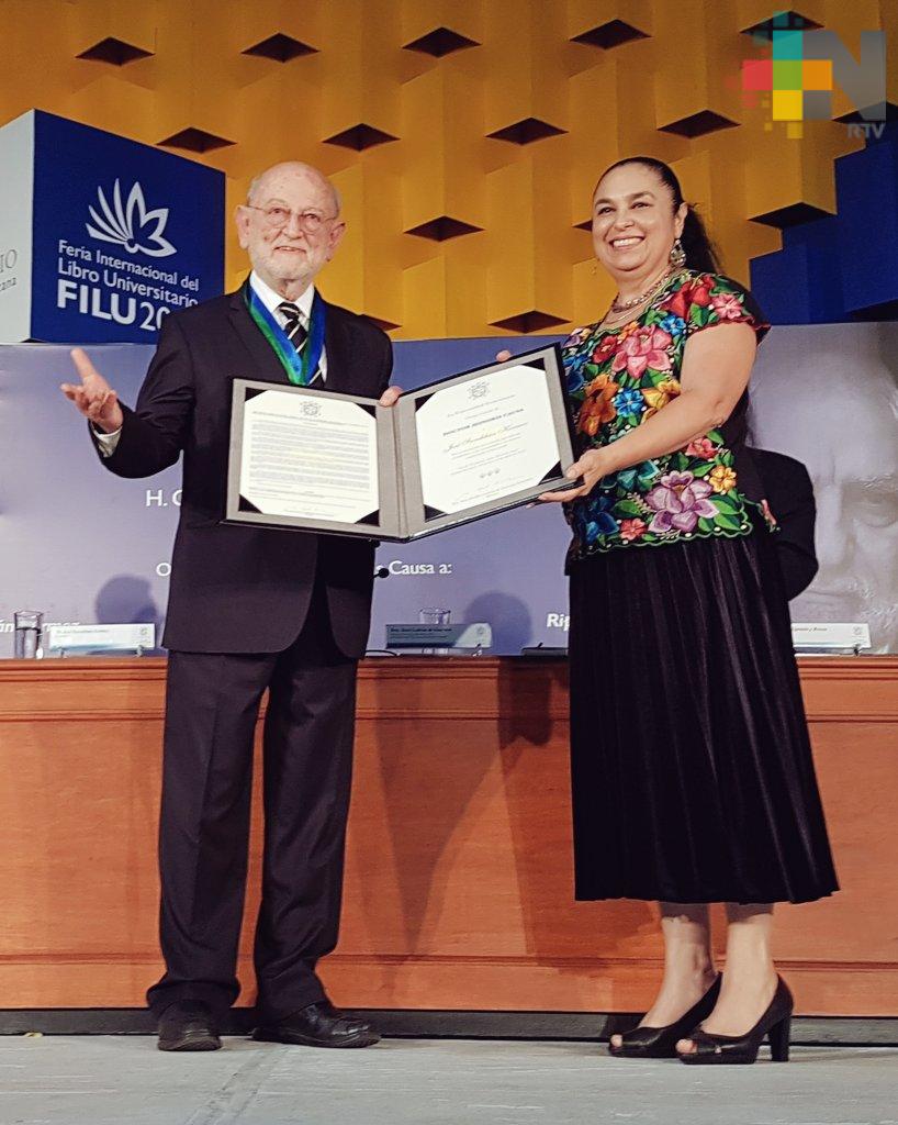 Xalapa, Ver.- En Sesión Solemne del Consejo Universitario General, la Universidad Veracruzana entregó el Doctorado Honoris Causa a José Sarukhán Kermez y al cineasta Arturo Ripstein en el marco de la Feria Internacional del Libro Universitario.