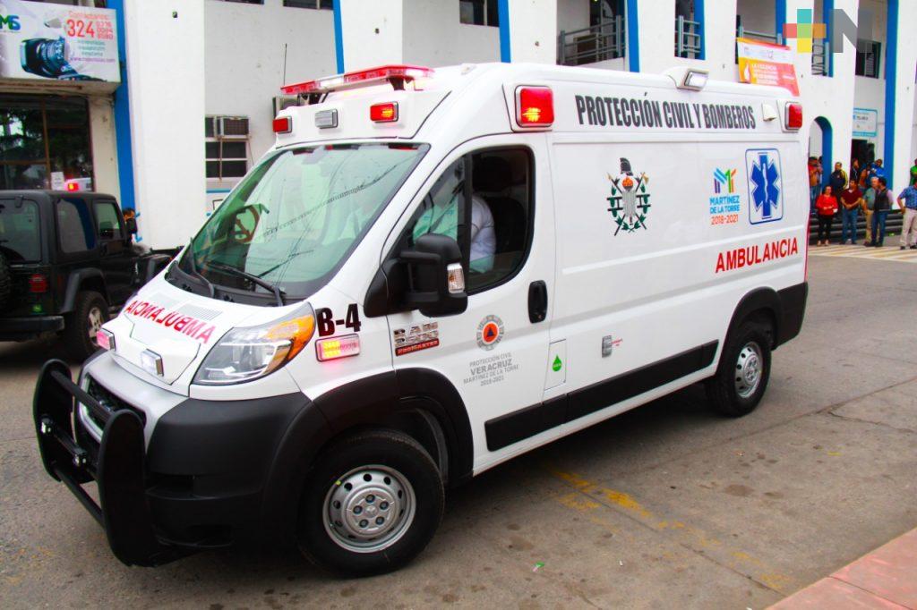 Martínez de la Torre, Ver.- Con ahorros logrados durante el 2019, las autoridades municipales adquirieron una ambulancia de alta tecnología y una pipa con moto bomba que fueron entregadas al Cuerpo de Bomberos y a la Unidad municipal de Protección Civil.
