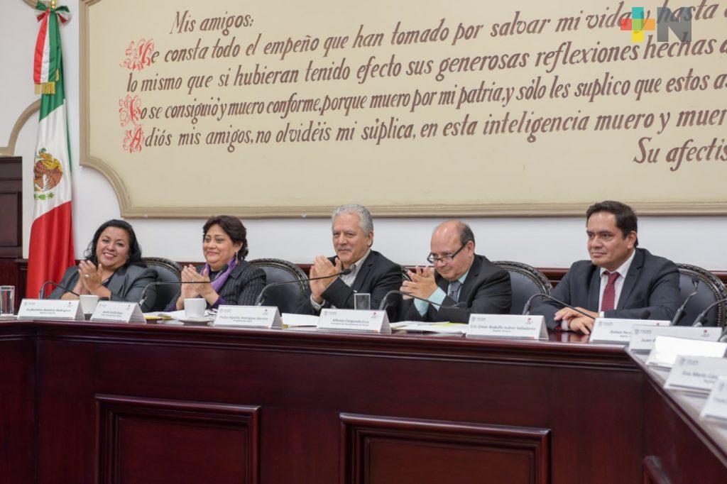 La magistrada Gladys de Lourdes Pérez Maldonado; en representación de la Dirección de Seguridad Ciudadana y Tránsito Municipal, Cristina Peláez Verdugo, y el director de la Editorial de la UV, Edgar García Valencia, así como funcionariado municipal.