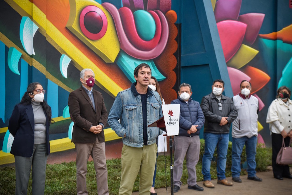 Xalapa, Ver.- El Gobierno Municipal de Xalapa entregó el mural Fovissste en fiesta, realizado por el artistas francés Nicolas Barrome Forgues.