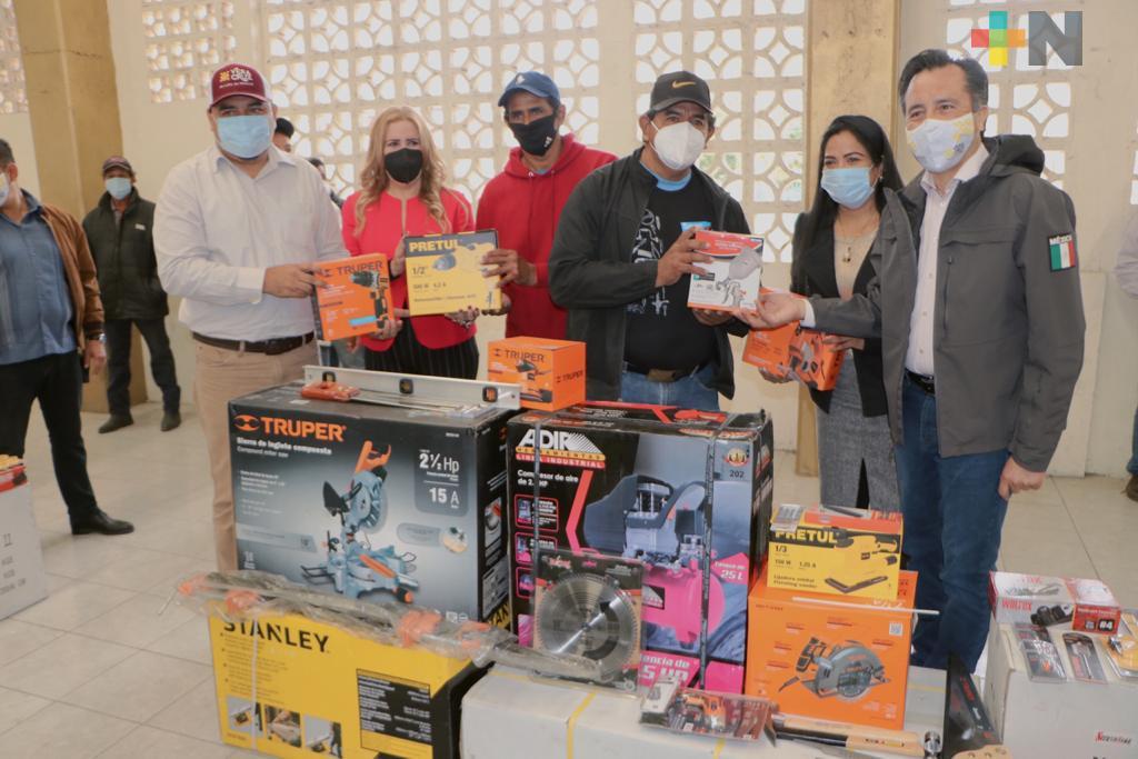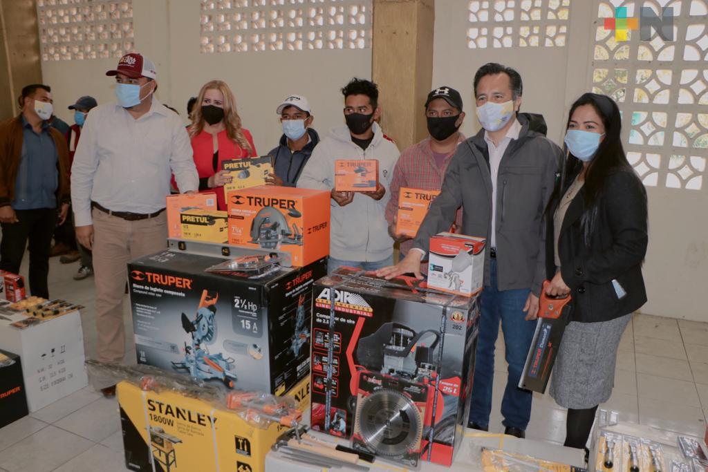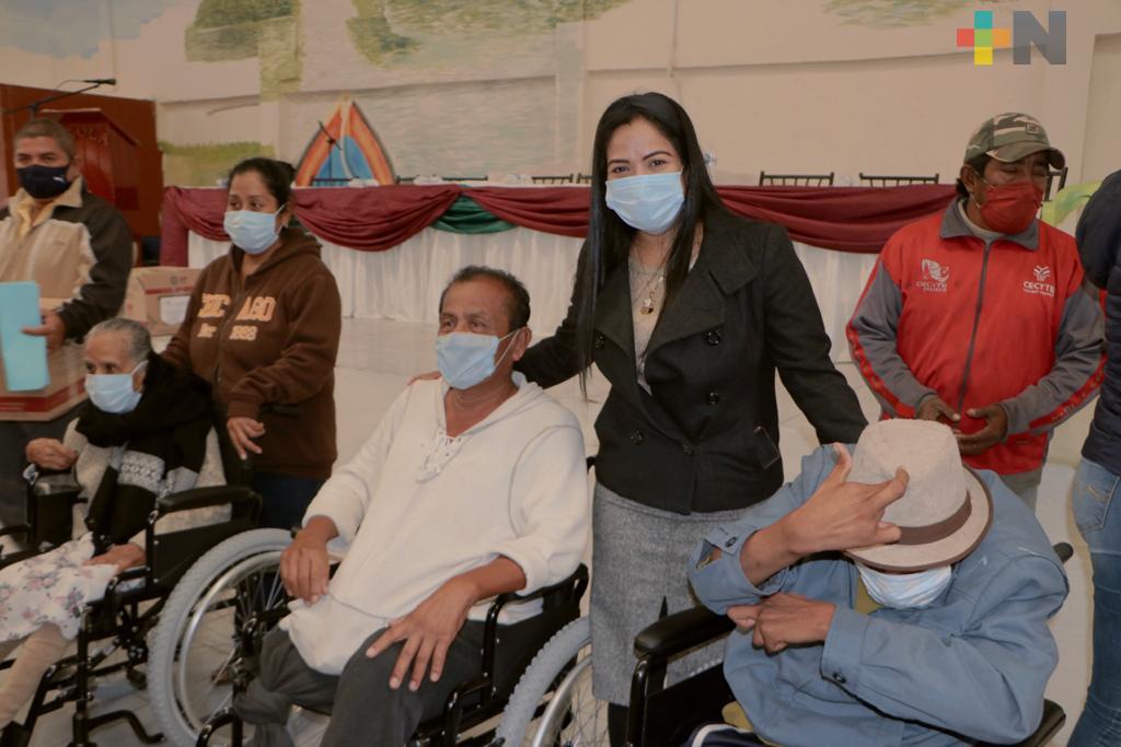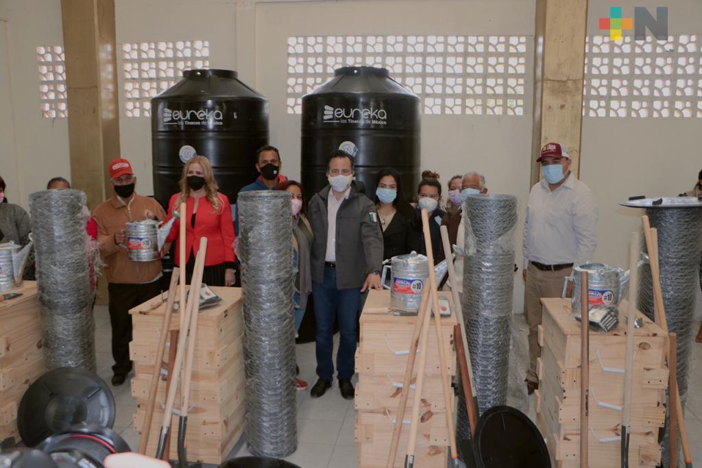 Acula, Ver.- Talleres completos de carpintería, huertos de traspatio, láminas, estufas ecológicas, aparatos funcionales y apoyos nutricionales gestionados por el DIF estatal tanto a cargo de Rebecca Quintanar Barceló y municipal que preside Rocío Cruz Domínguez, fueron entregados por el gobernador Cuitláhuac García Jiménez a ciudadanos de Acula.