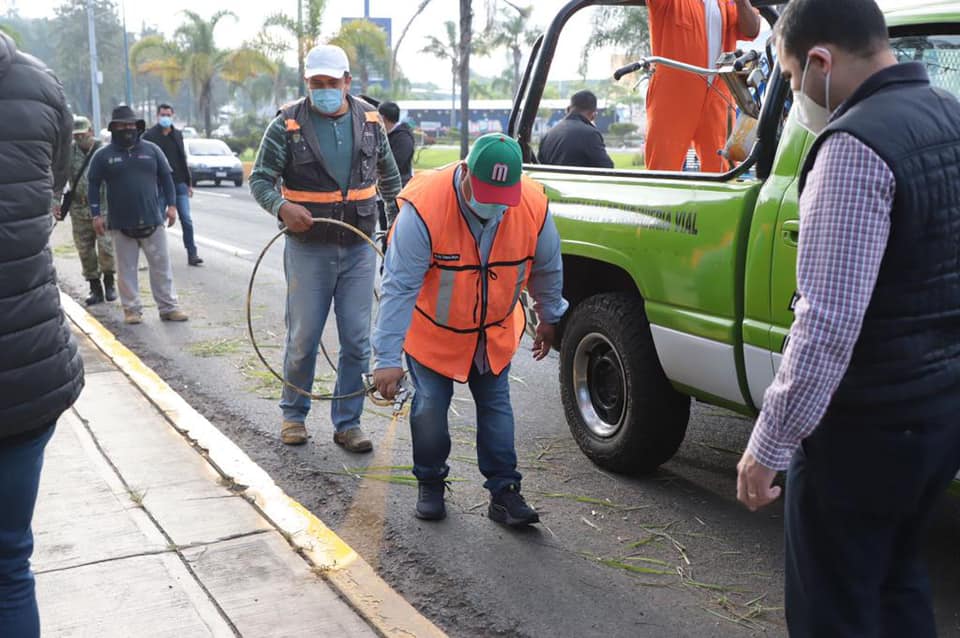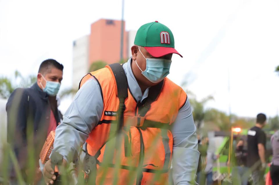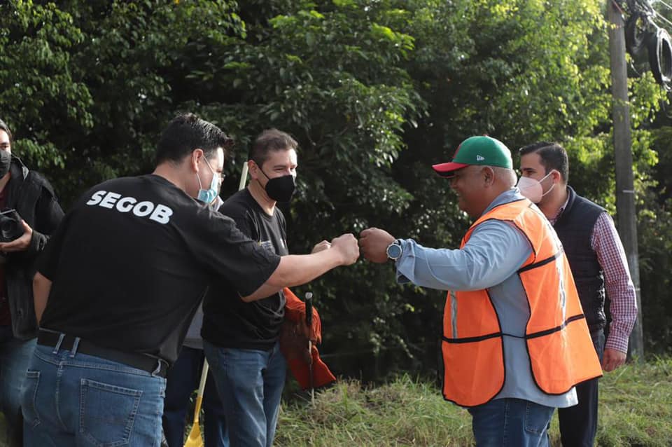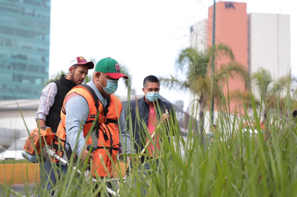 “Con entusiasmo y desde las 6:00 horas de este sábado, compañeras y compañeros de la Secretaría de Gobierno realizamos la jornada de chapeo y limpieza en la avenida Lázaro Cárdenas, a la altura de la zona de centros comerciales.