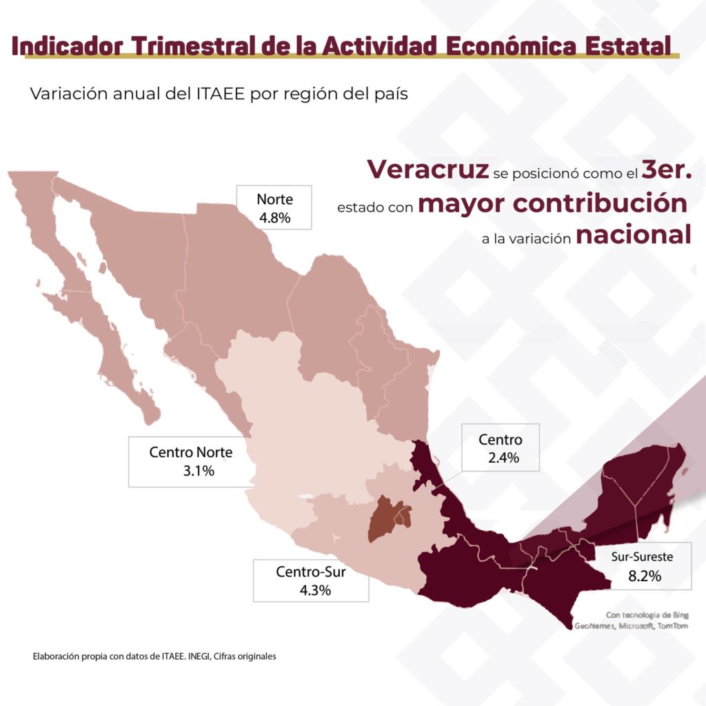 El Indicador Trimestral de la Actividad Económica Estatal (ITAEE) brinda información que permite ofrecer un panorama de la evolución económica a corto plazo; en donde la entidad veracruzana se posicionó como el tercer estado con mayor contribución a la variación nacional.