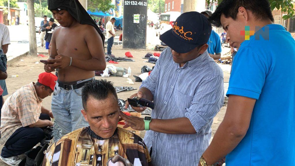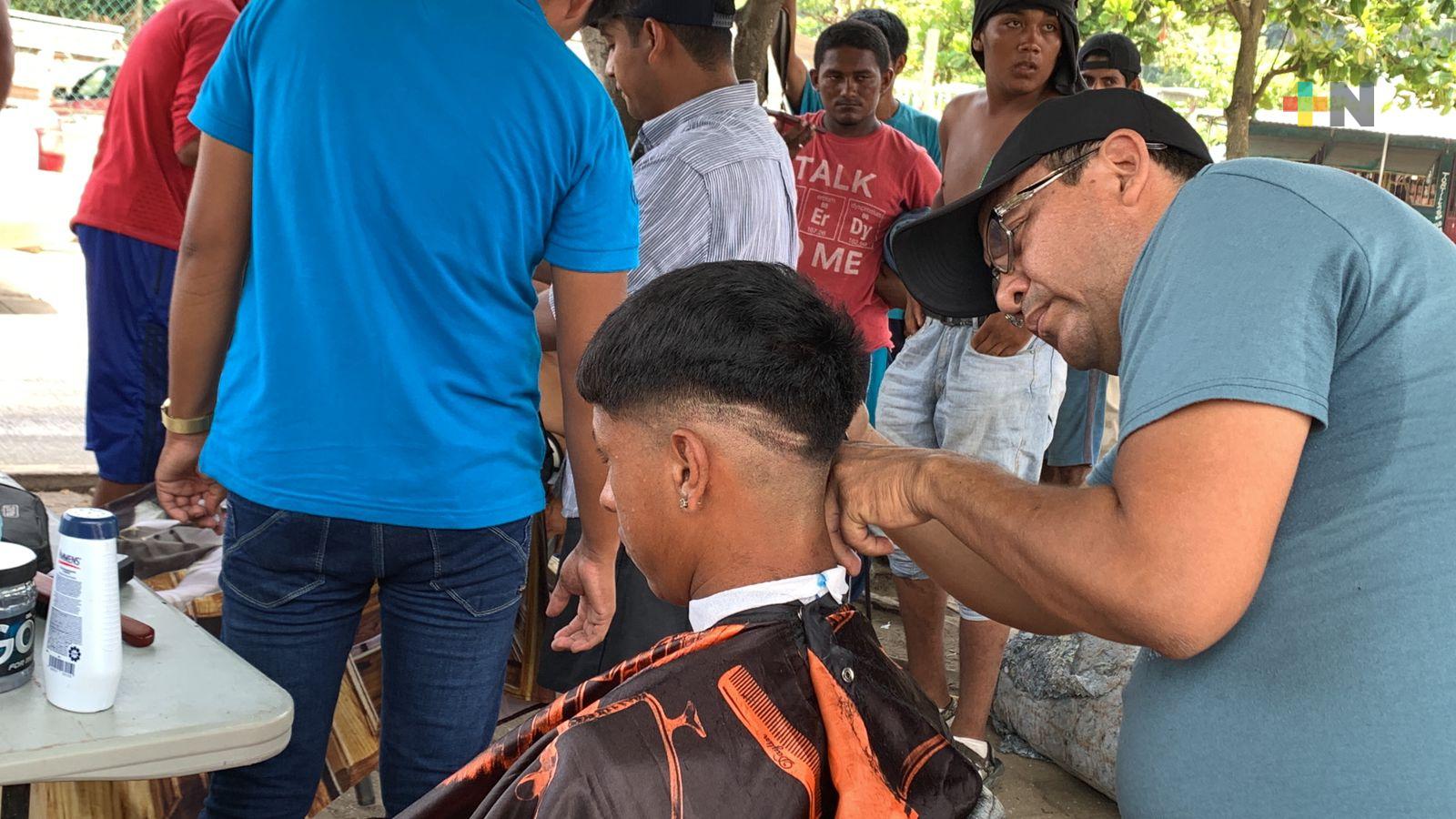Escuela de barbería brinda cortes gratuitos a migrantes en Coatzacoalcos