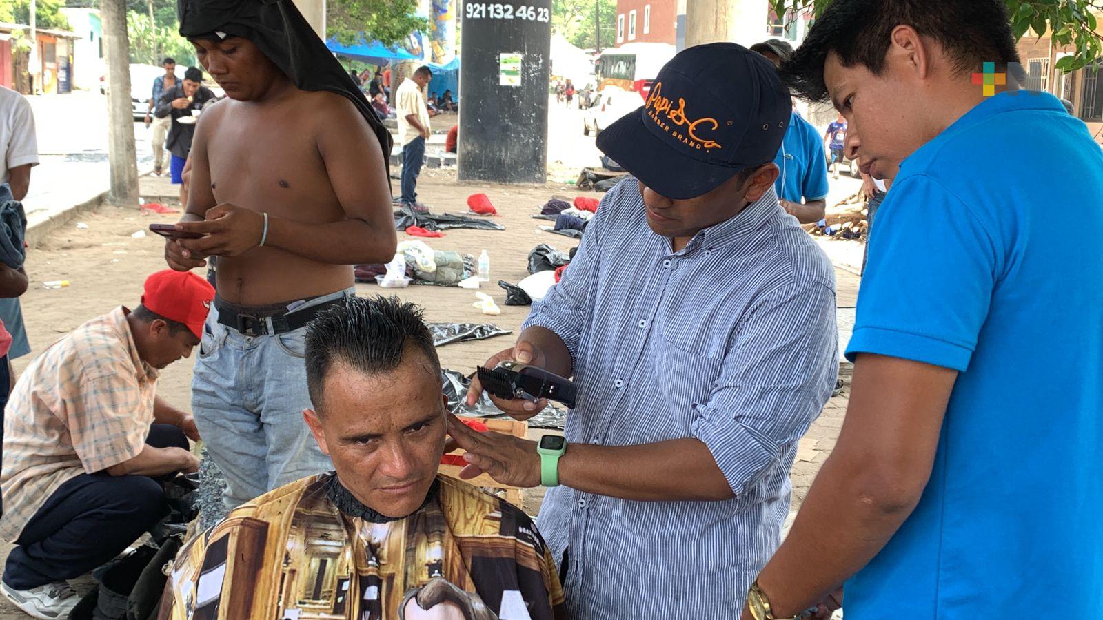 Coatzacoalcos, Ver.- La escuela Avant Garde Barbería y Educación de Coatzacoalcos brinda de manera gratuita todos los fines de semana cortes de cabello a migrantes que se ubican en los bajos del puente Avenida I.
