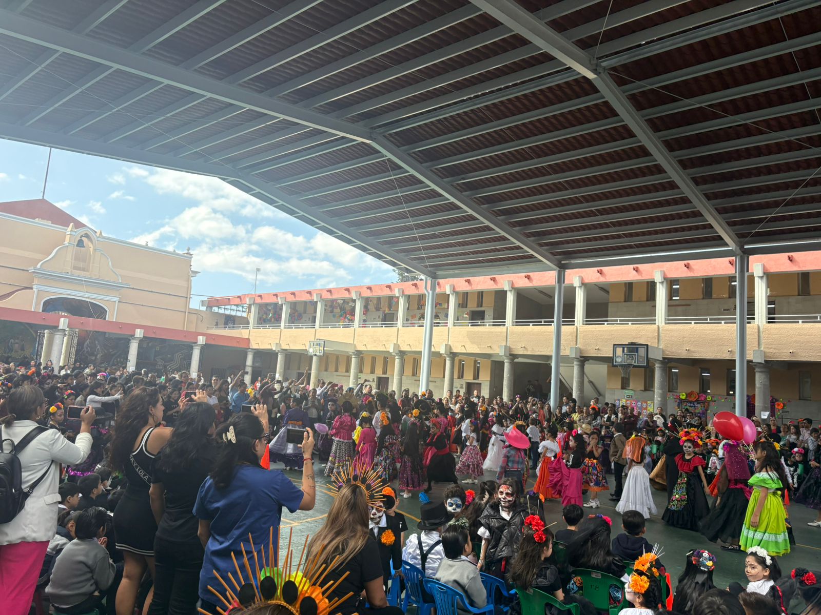 «Es un altar que cada año realizamos. Sin embargo, este año, tratamos de hacer un altar un poquito más grande de todo el teatro que está al aire libre, con toda la comunidad educativa. Es decir, los niños colaboraron, los padres a venirlo a realizar. Las flores que ustedes ven aquí, los papás hicieron dos flores por familia para realizarlo, y nos apoyó el maestro de grupo que es de aquí de la escuela, que le gusta mucho lo artístico. Nos coordinamos con la Asociación de Padres de Familia y con el consejo escolar de participación social para realizar el altar. Los niños vienen emocionados a la escuela como cualquier día, pero hoy vestidos en alusión a la ocasión. Esto es parte de la cultura que nosotros tenemos. Independientemente de las creencias religiosas” señaló Eloísa Constantino Morales, directora de la primaria.