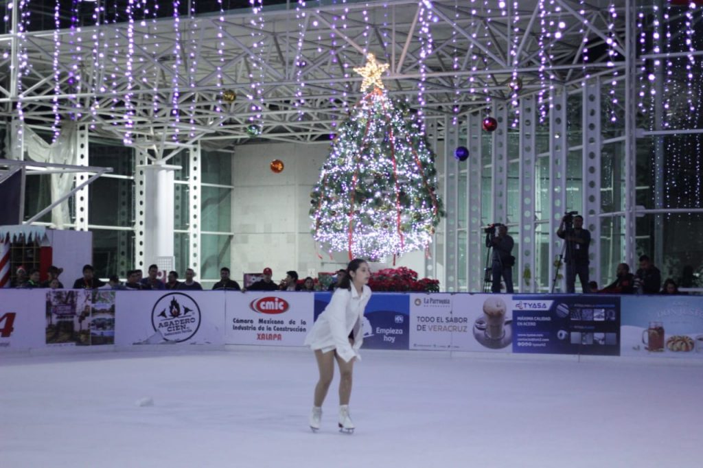 Xalapa, Ver.- Las campeonas nacionales de patinaje artístico sobre hielo, dieron una gran exhibición en la pista de hielo instalada en el MIX y que congregó a cientos de veracruzanos que presenciaron un singular espectáculo.