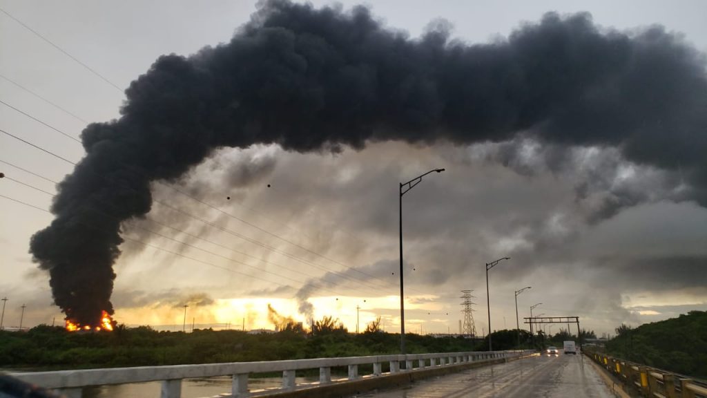 Coatzacoalcos, Ver.- Un incendio se registró durante la mañana del domingo en un tanque de almacenamiento de la Terminal Maritima de Pajaritos, a las afueras de Coatzacoalcos.