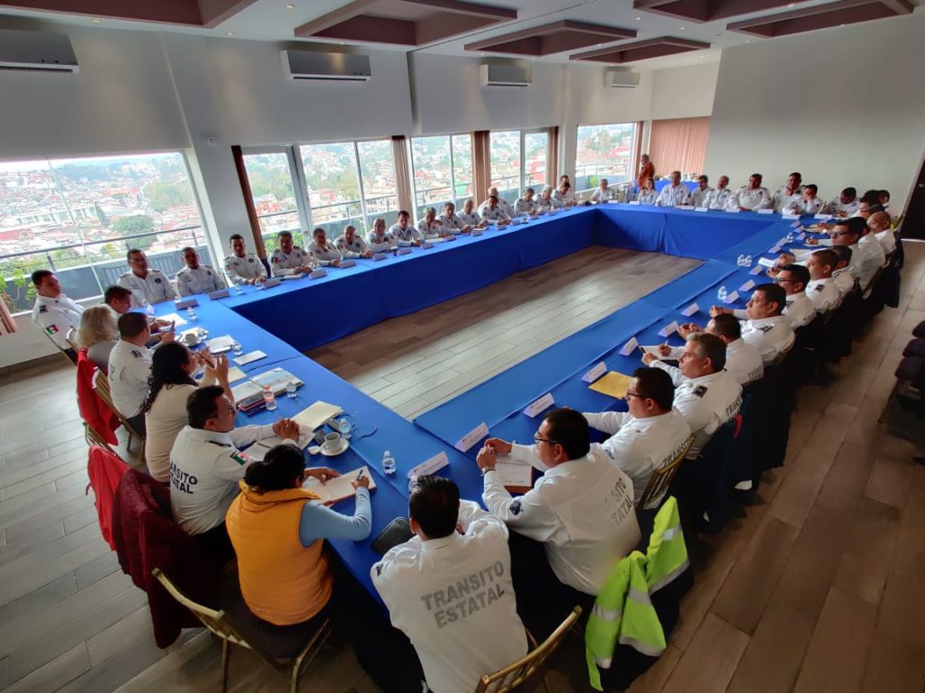 Xalapa, Ver.- Cómo parte del compromiso por salvaguardar la integridad de las y los veracruzanos, la Secretaría de Seguridad Pública (SPP), a través de la Dirección General de Tránsito y Seguridad Vial del Estado (DGTSV), sostuvo una reunión de trabajo con 64 delegados de tránsito, para definir las líneas de acción en pro de la seguridad vial.
