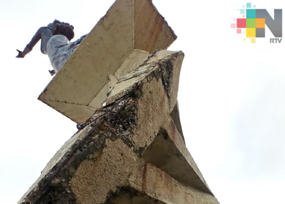 A través de redes sociales, algunos ciudadanos exhibieron cómo se encuentra la base del monumento, tal y como se observa hay pedazos de concreto tirados por todos lados, que corresponden a la base principal de la estatua que fue colocada desde hace más de ocho años y que actualmente está latente su caída y puede causar algún accidente entre las unidades que a diario transitan por esta zona.