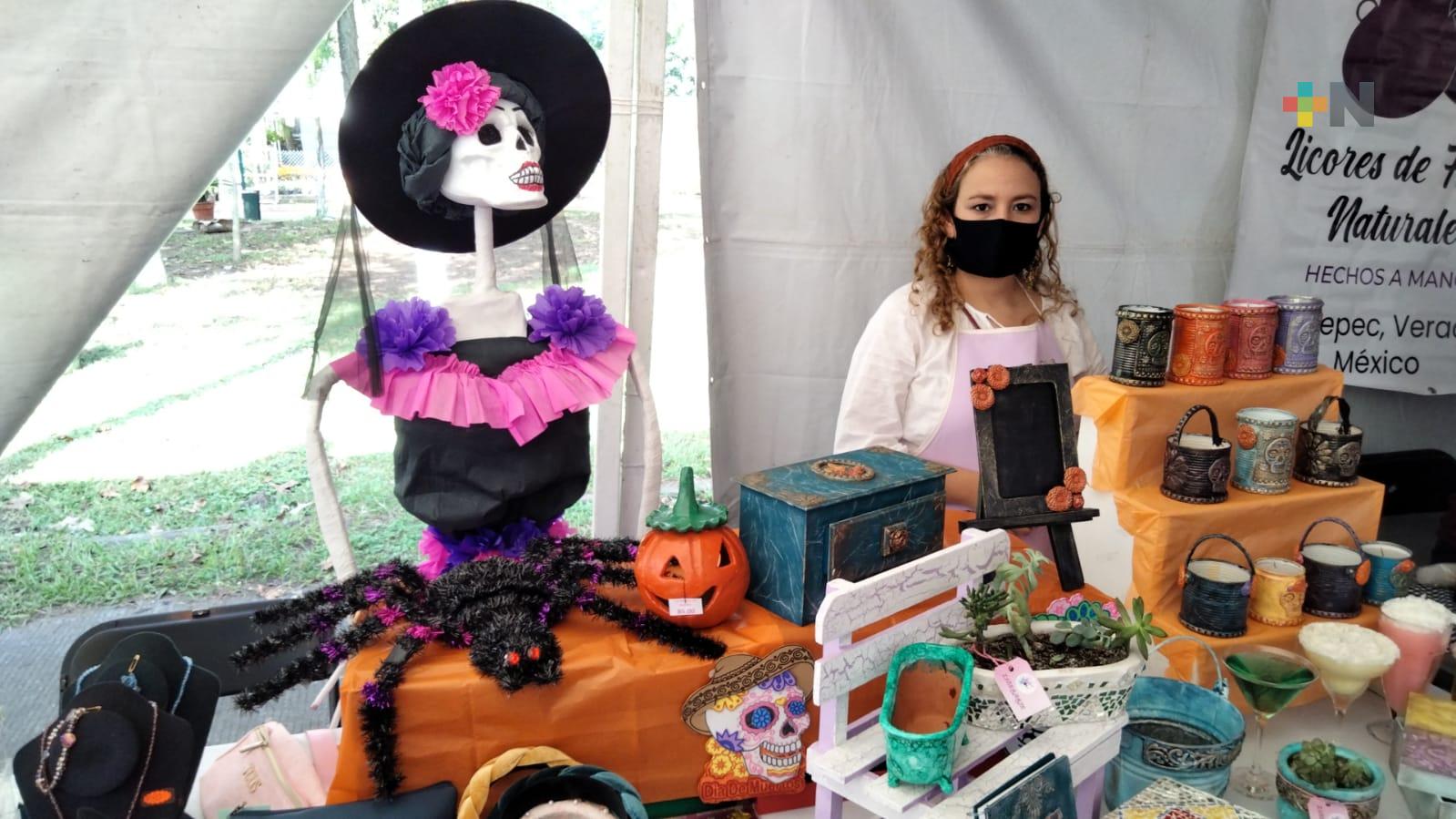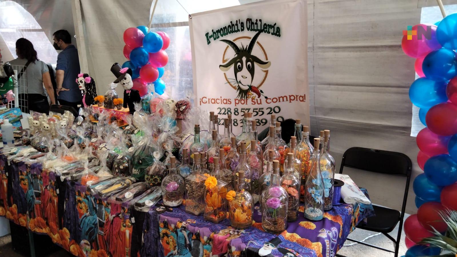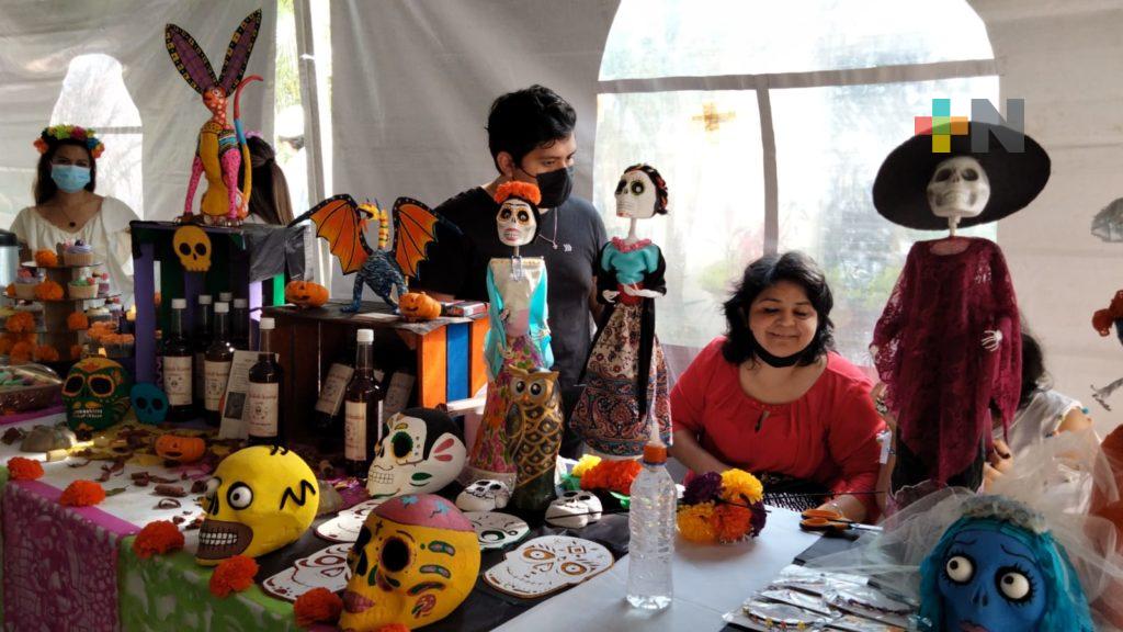 Xalapa, Ver.- Teniendo como marco el parque Doña Falla, adornado con flores de cempasúchil y toda variedad de especies de la región, la Expo Emprendedores, Artesanos y Gastronímica abrió sus puertas para ofertar sus productos a los que asistan a este espacio y mostrarles artesanías de bisutería, de cera con figuras de calaveras y flores, así como ropa tradicional y gastronomía.