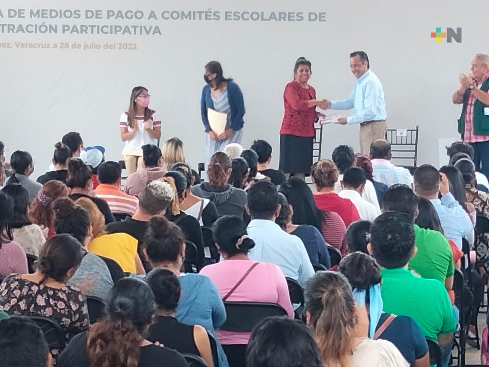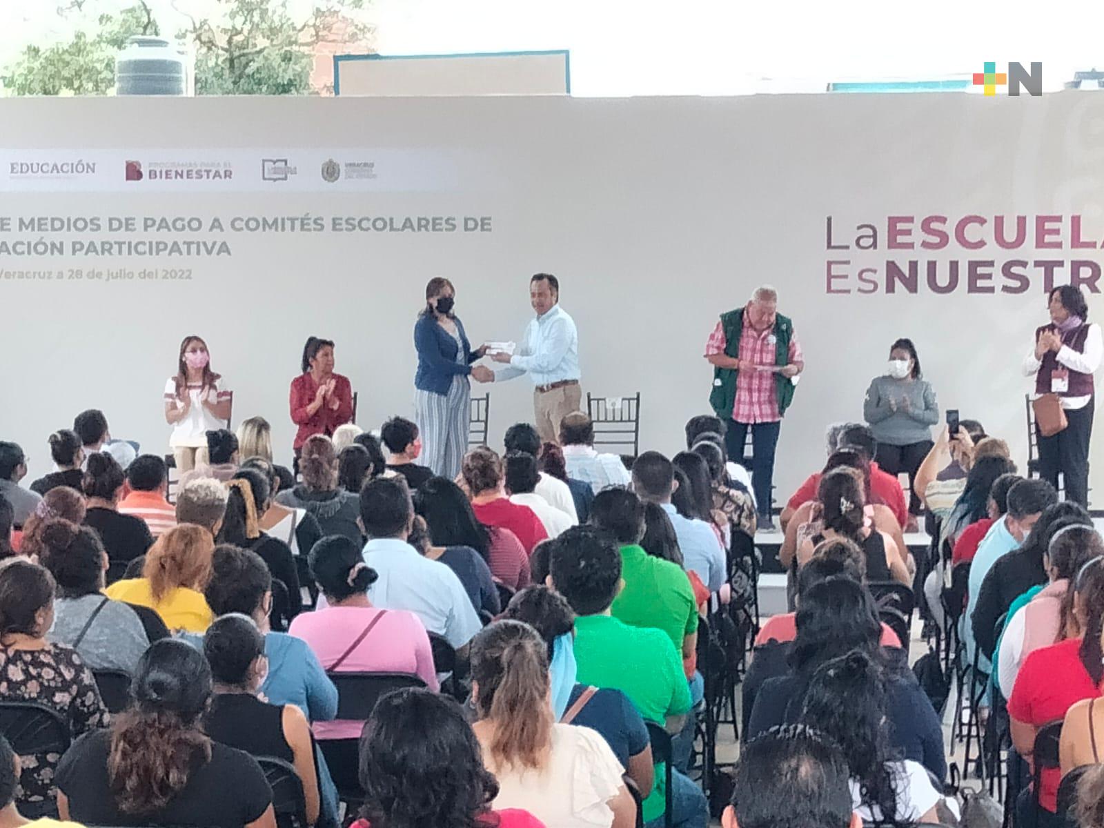 Este jueves, el gobernador Cuitláhuac García Jiménez y el delegado de los programas de la Secretaría del Bienestar en el estado, Manuel Huerta Ladrón de Guevara, entregaron tarjetas con este recurso a los padres de familia que integran los comités escolares de administración participativa de escuelas de distintos niveles en la región de Xalapa.