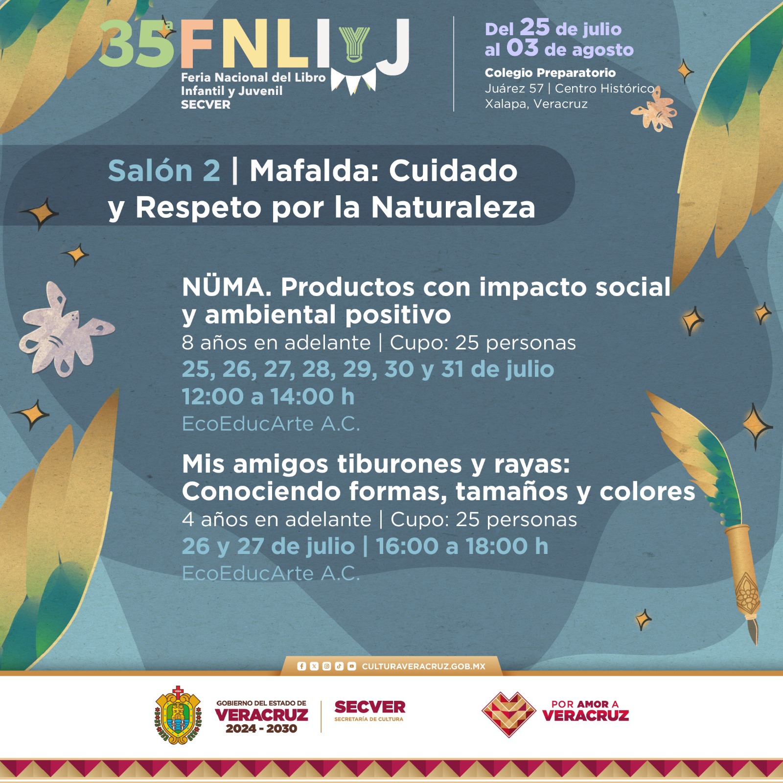Xalapa, Ver.- La Secretaría de Cultura de Veracruz (Secver) invita a las actividades de la 35ª Feria Nacional del Libro Infantil y Juvenil. Habrá presentaciones de libros, conciertos, danza, charlas y talleres a partir de las 11:00 horas en el Colegio Preparatorio de Xalapa. La oferta de actividades es completamente gratuita y apta para todo el público.