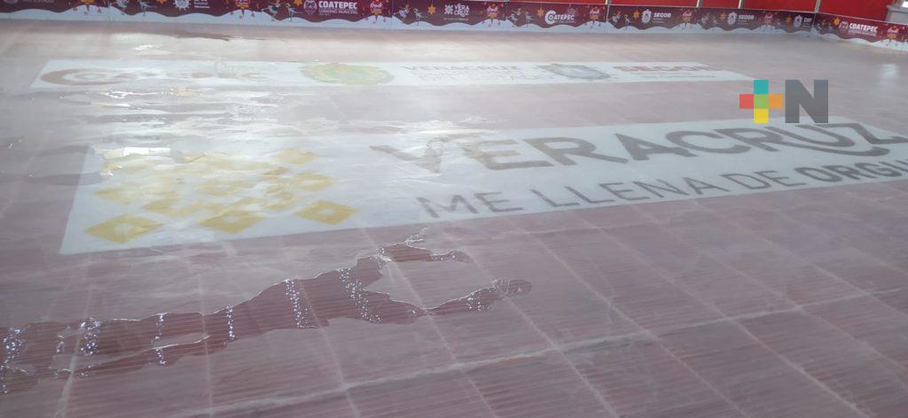 Todo gracias a la coordinación del gobierno estatal, el DIF Veracruz y el gobierno municipal a partir de este sábado tendrán acceso niñas, niños, jóvenes y adultos a la pista que este viernes aún estaba solidificando el hielo para que esté dispuesto para su uso desde temprana hora el fin de semana.