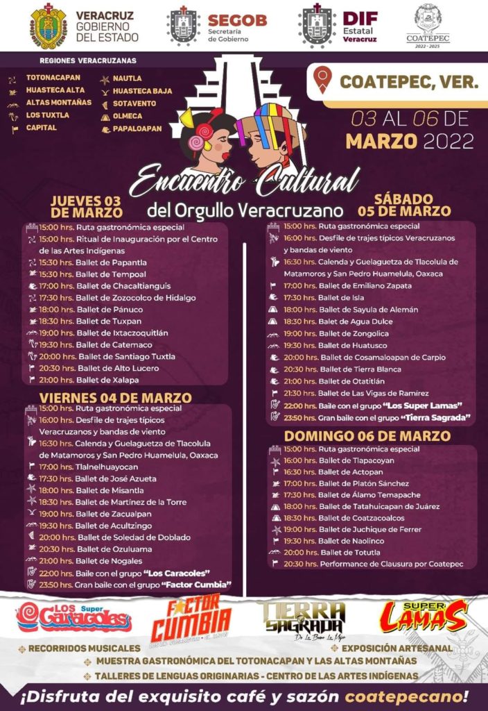 Posteriormente, en punto de las 4 de la tarde se llevará a cabo el Desfile de Trajes Típicos Veracruzanos y Bandas de Viento.