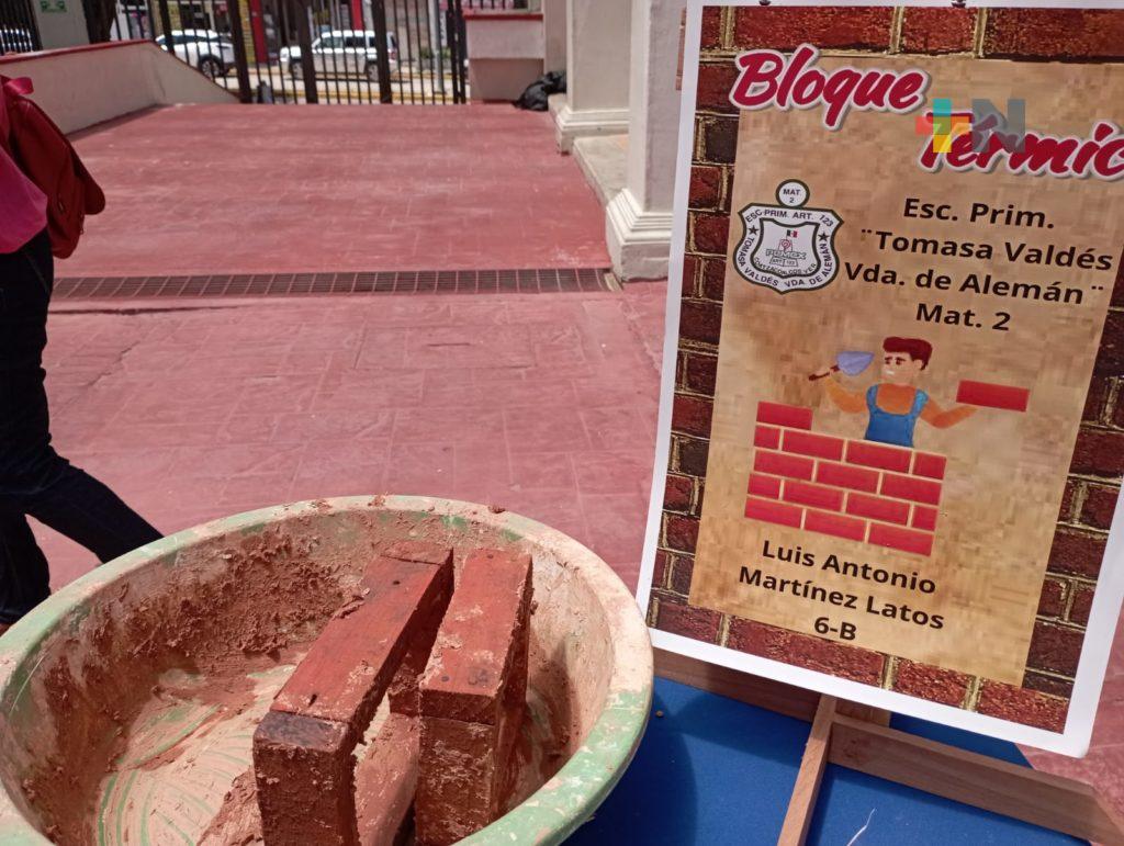Coatzacoalcos, Ver.- Con el objetivo de construir viviendas a bajo costo, que se encuentren aisladas térmicamente y que su edificación no representen un impacto al medio ambiente, Luis Antonio Martínez, estudiante del sexto grado de la escuela Tomasa Valdés viuda de Alemán, creó bloques térmicos a base de materiales económicos y orgánicos.