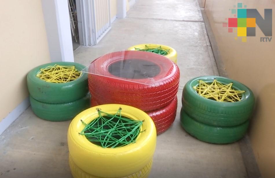 Las llantas fueron transformadas en mobiliario para planteles escolares que más lo necesitan.