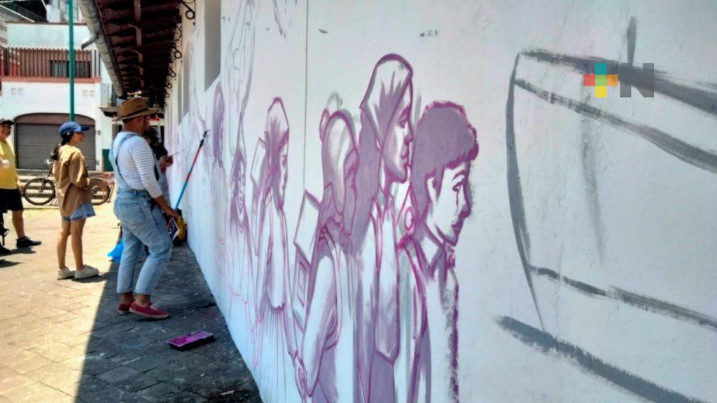 Xalapa, Ver.- El exilio que en distintos años vivieron habitantes de España y de países latinoamericanos como Uruguay, Argentina y Chile a consecuencia de las dictaduras y la violencia es el tema del mural alusivo a la Feria Internacional del Libro Universitario de este 2024.