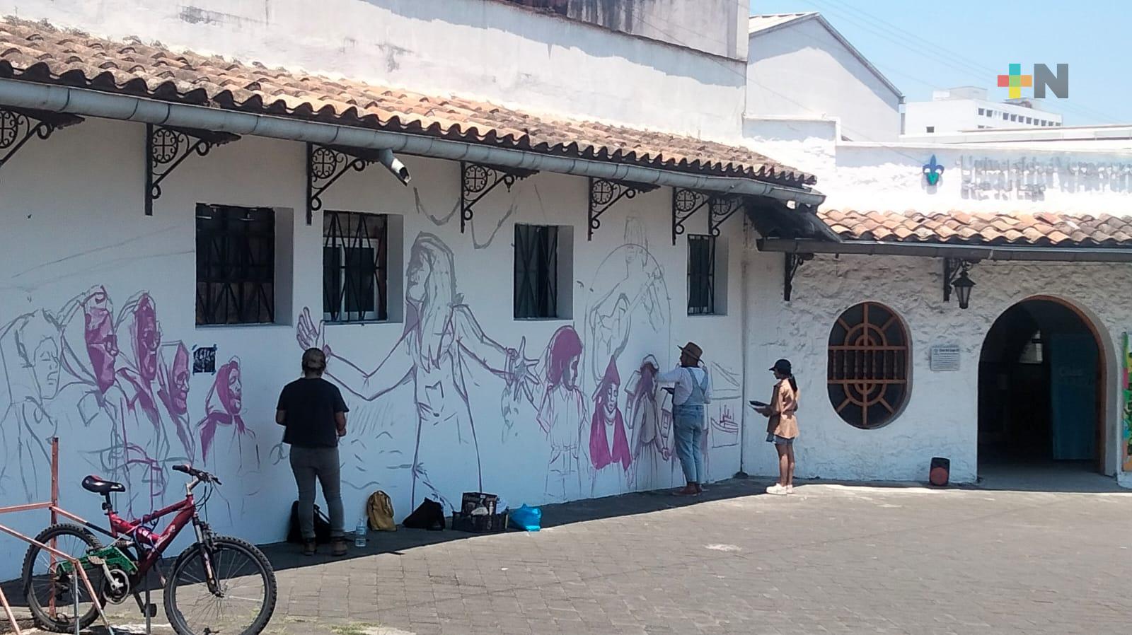 Xalapa, Ver.- El exilio que en distintos años vivieron habitantes de España y de países latinoamericanos como Uruguay, Argentina y Chile a consecuencia de las dictaduras y la violencia es el tema del mural alusivo a la Feria Internacional del Libro Universitario de este 2024.