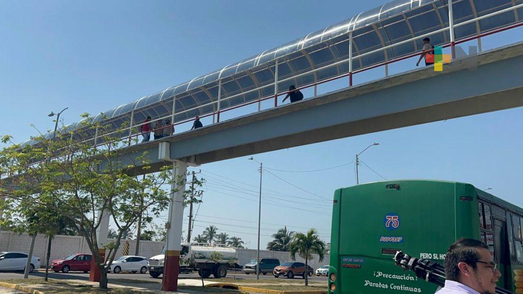 Coatzacoalcos, Ver.- Estudiantes del Tecnológico Nacional de México campus Coatzacoalcos, también conocido como Itesco comenzaron a utilizar el puente peatonal recientemente rehabilitado por el ayuntamiento porteño.