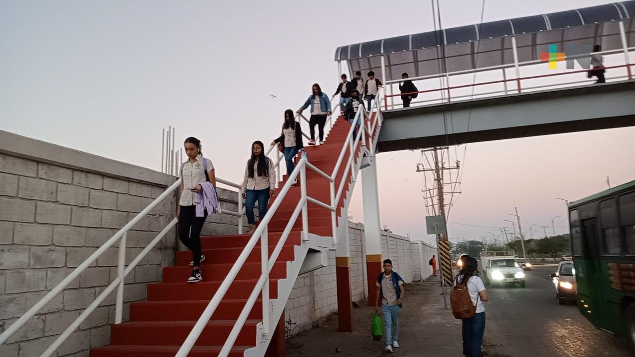 Coatzacoalcos, Ver.- Estudiantes del Tecnológico Nacional de México campus Coatzacoalcos, también conocido como Itesco comenzaron a utilizar el puente peatonal recientemente rehabilitado por el ayuntamiento porteño.